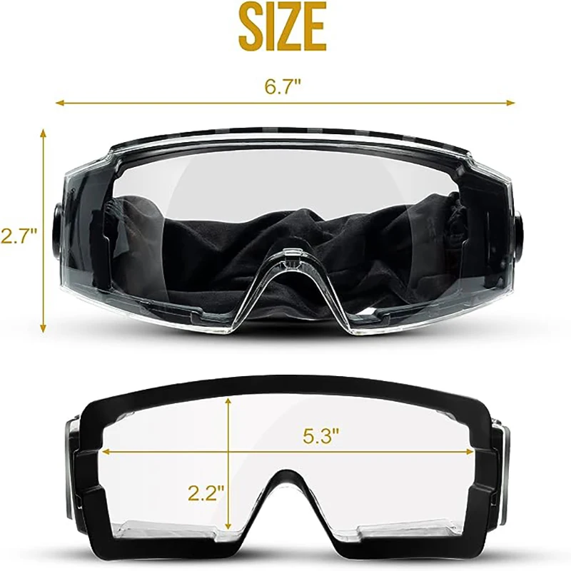 Protección ocular de seguridad: las gafas livianas se pueden usar fácilmente durante mucho tiempo y protegen los ojos de escombros voladores y contaminantes húmedos o secos.El diseño panorámico de las gafas proporciona una vista lateral completa.
