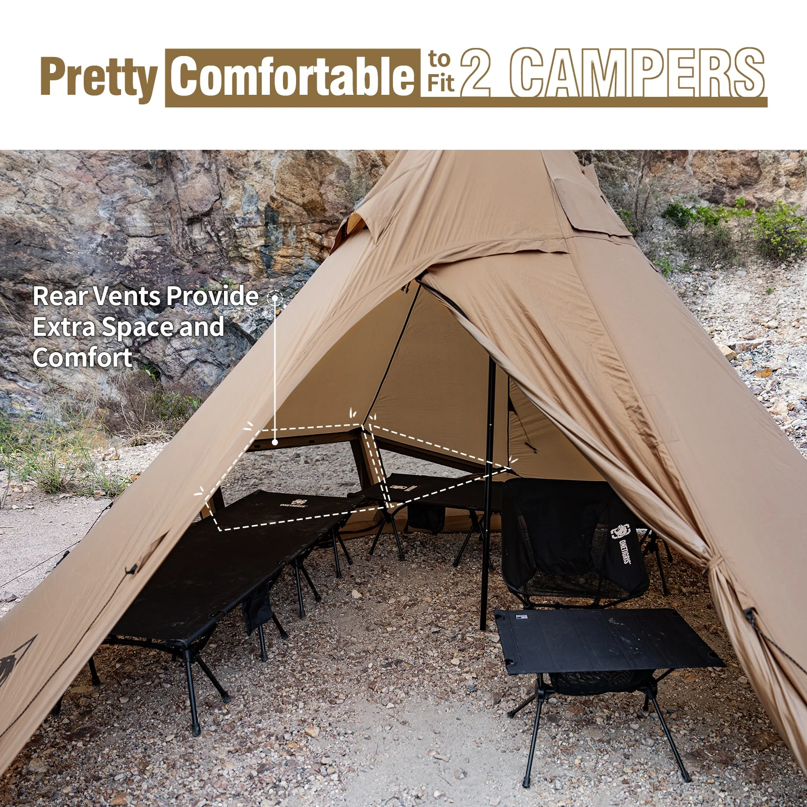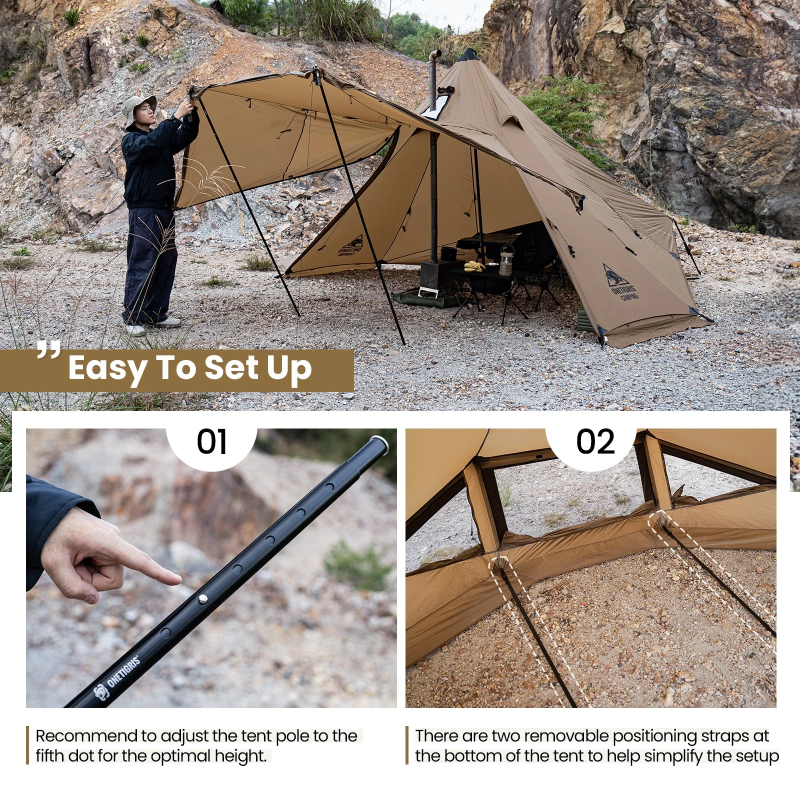 | COMPATIBLE CON ESTUFA: ideal para acampar en invierno con faldas de nieve, una abertura de tubería de humos y un gato de estufa, con un sistema de ventilación 3D a través de rejillas de ventilación de flujo de aire especialmente diseñadas