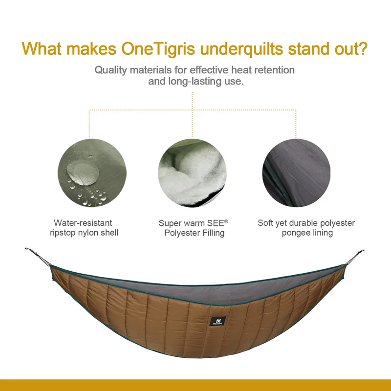 OneTigris hamaca ultraligera Underquilts 3 Temporada 41 F-68 F/5 C-20 C HIDEOUT edredón cálido para acampar senderismo mochilero