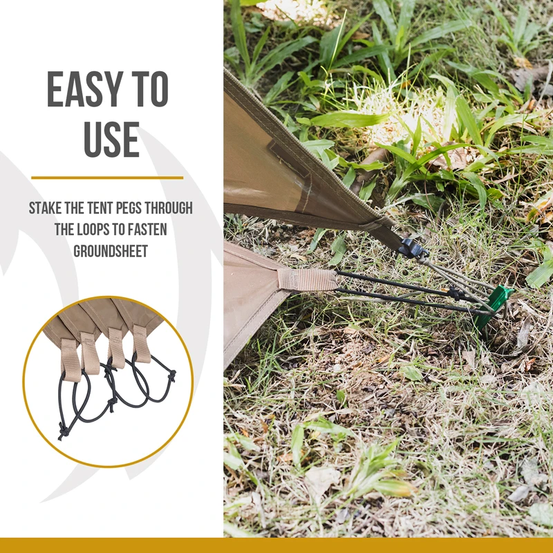 ¿Por qué elegir las huellas de tienda de campaña OneTigris para 2 personas?Las láminas de tierra son prácticas para mantener la humedad, el moho y el frío lejos de usted y de su equipo, y extenderán la vida útil de su tienda manteniéndola protegida de suelos abrasivos. Este es compatible con elY, Construido A partir de un robusto tirador con clasificación impermeable de 1500mm, con bucles de amarre bungee de grado A y costuras reforzadas en todos los puntos de tensión.