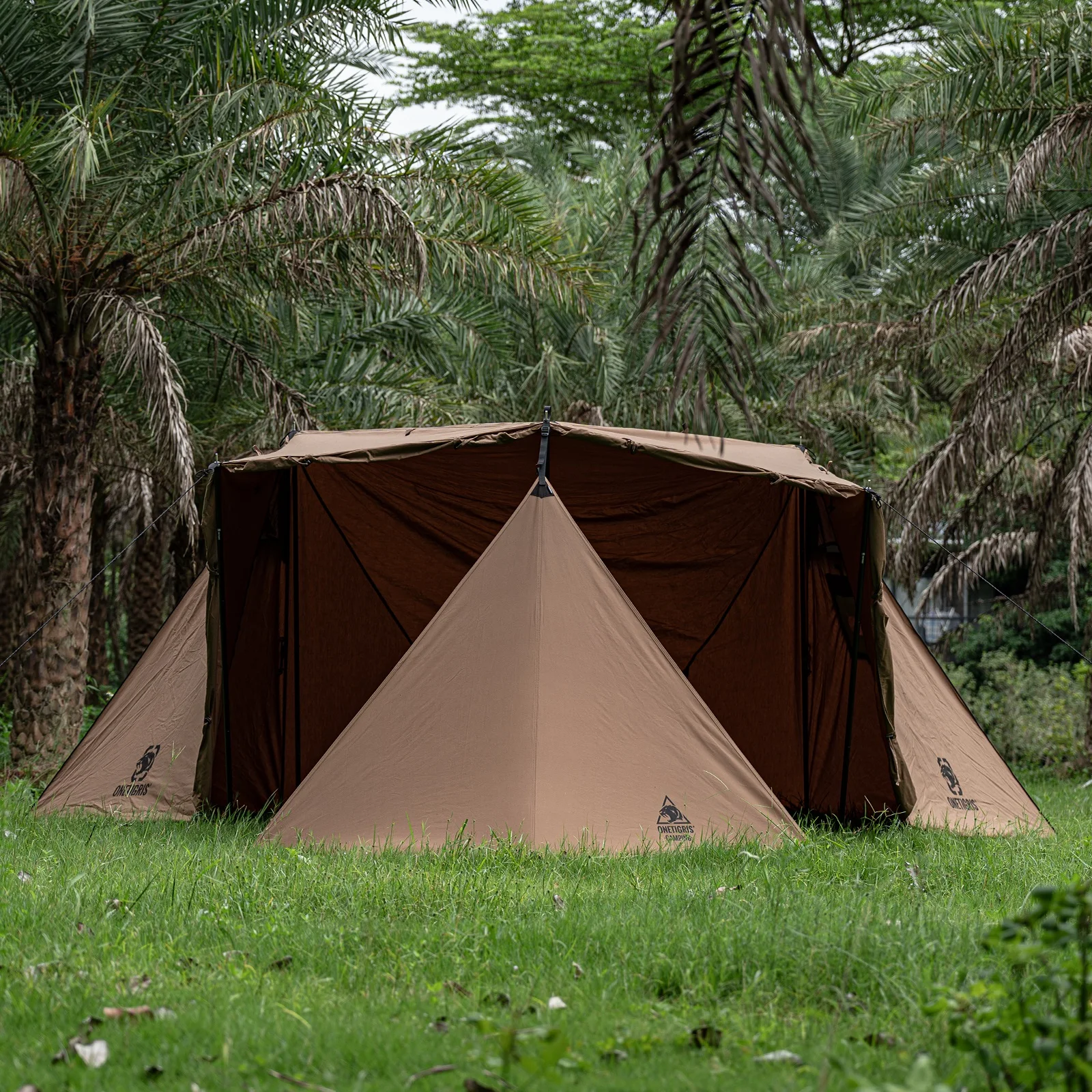 Su forma única también permite la configuración de una luz UV y la luz solar que bloquea el porche delantero, cuando está equipado con la tienda ROCK SHIELD Bushcraft o similar, creando un refugio seguro completamente cerrado al aire libre para mantenerse caliente y seguro, e incluso para usar con un proyector para su propio cine al aire libre.