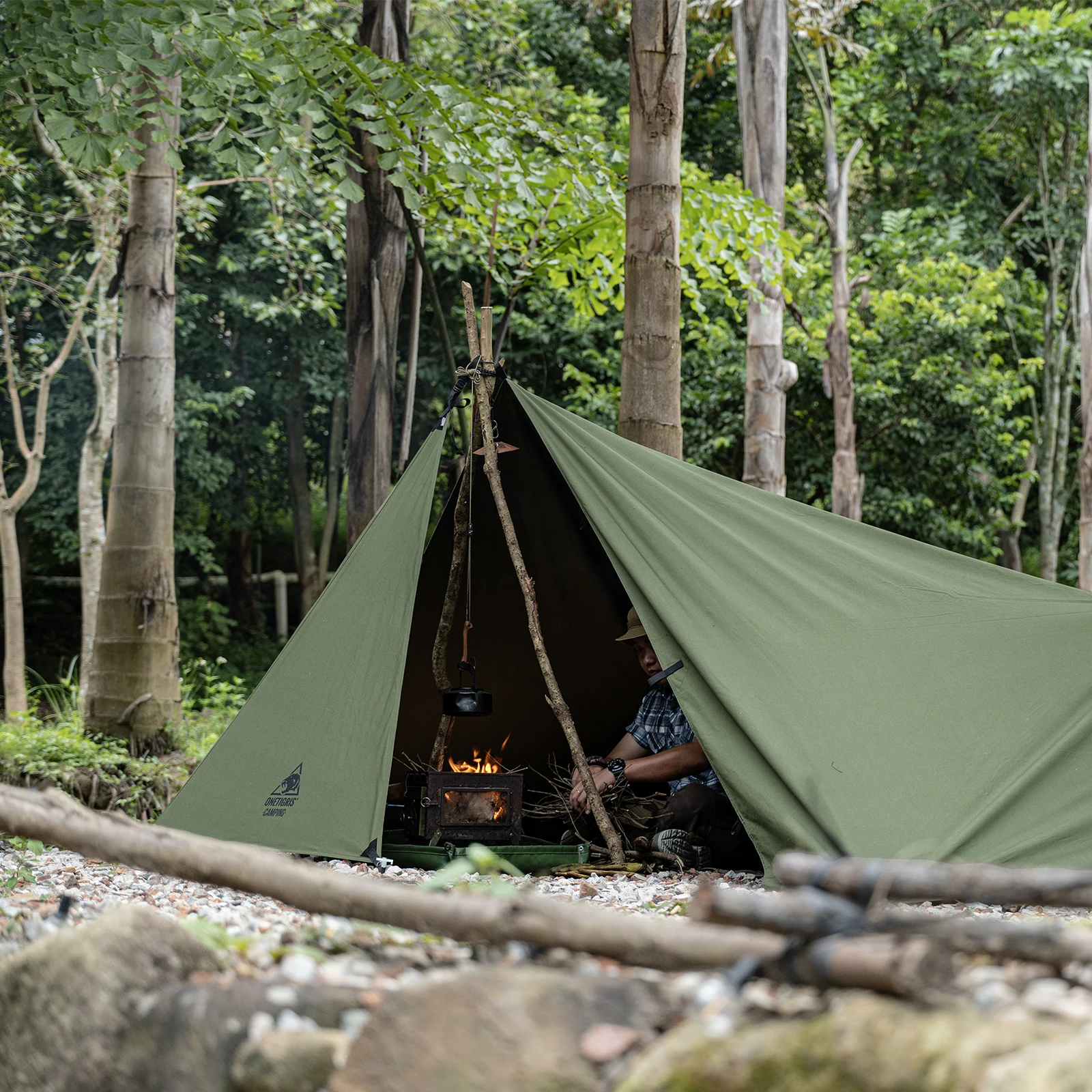 Acerca del algodón terileno: La tela T/C es conocida por su calidad robusta que es más gruesa, más pesada y más duradera que la tela habitual para equipos de exterior comúnmente utilizada. También es ignífugo (más seguro de usar junto a fogatas), bloquea eficazmente la luz solar y el calor, Y su tecnología de material única le permite ser más resistente al agua con cada uso a través de la interacción de la tela con la humedad en el exterior. El rendimiento de la tela se puede mejorar colocándola junto a un río, Arroyo o llovizna.