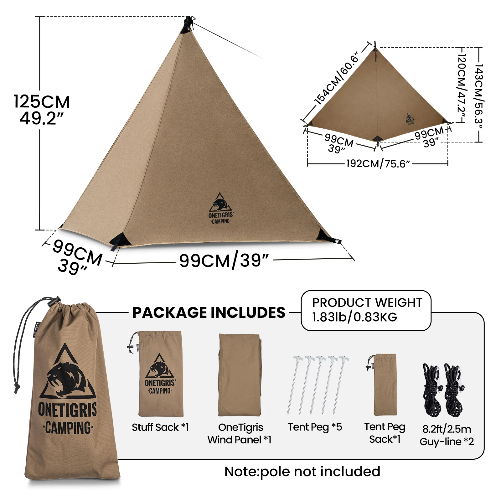 | Compatible con ROCK SHIELD T/C Bushcraft Shelter para usar como lona accesoria para el porche delantero para proteger a los campistas contra el viento y la luz UV
