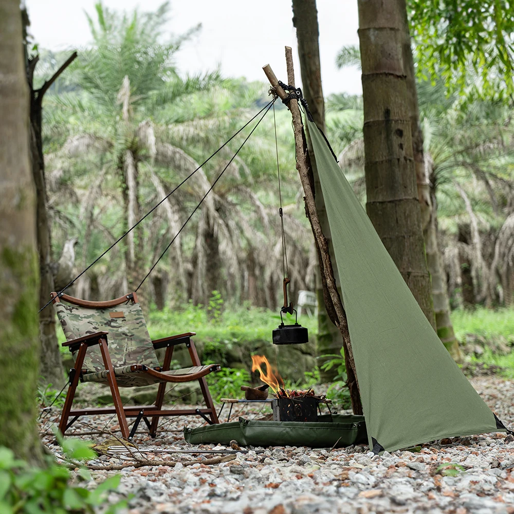 | Funciona principalmente como una lona de bloqueo de viento que ofrece protección contra el viento y una mejor privacidad, para usar con una estufa de camping u otro equipo de cocina al aire libre