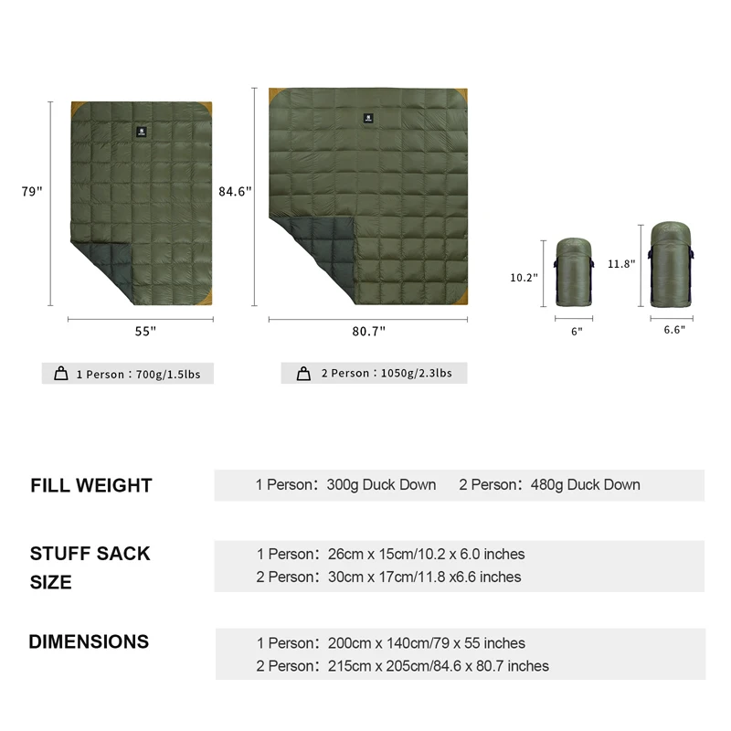 | Can be used as a blanket or a top-quilt for tents and hammocks
