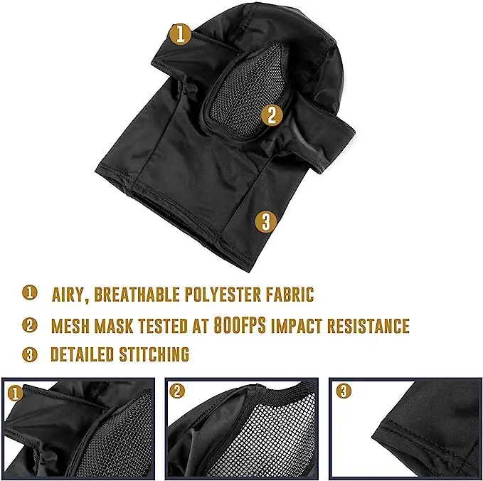 Capucha táctica OneTigris con máscara de malla: tejido de poliéster ligero, duradero y muy transpirable.
