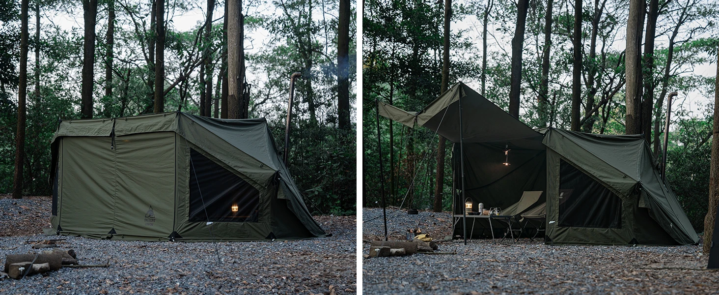 El tejido T/C es conocido por su calidad robusta que es más gruesa, más pesada y más duradera que el tejido habitual para equipos al aire libre comúnmente utilizado. También es ignífugo (más seguro de usar junto a fogatas), bloquea de manera eficiente la luz solar y el calor, Y su tecnología de material única le permite ser más resistente al agua con cada uso a través de la interacción de la tela con la humedad en el exterior. El rendimiento de la tela se puede mejorar colocándola junto a un río, Arroyo o llovizna.
