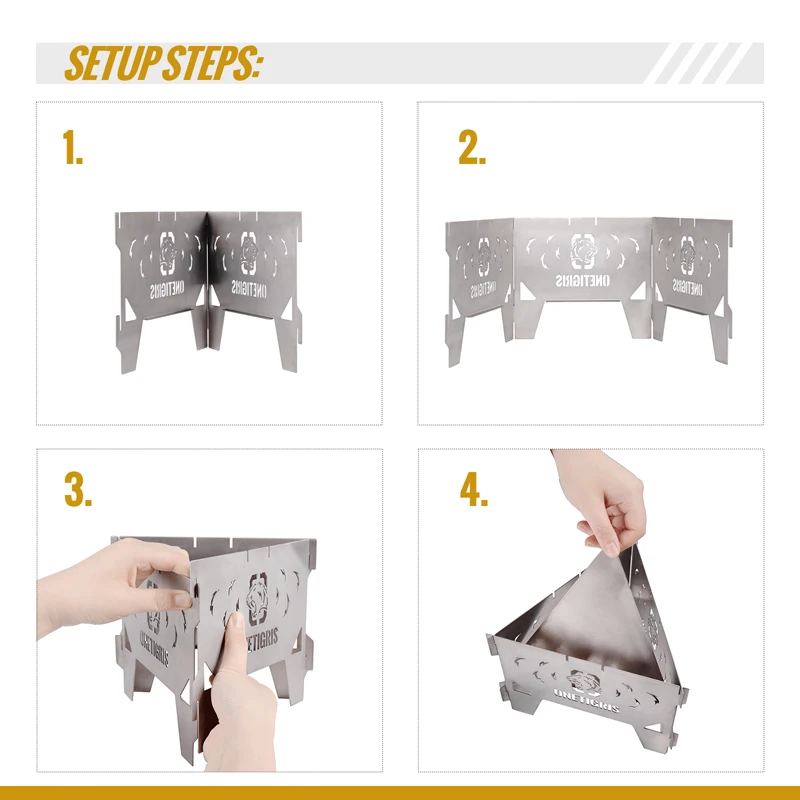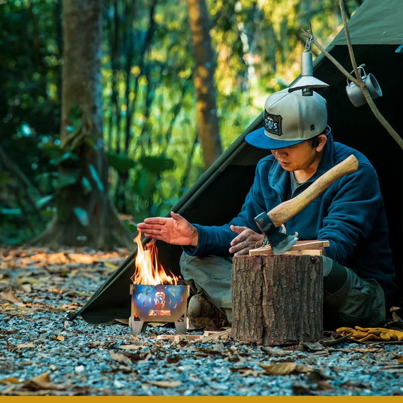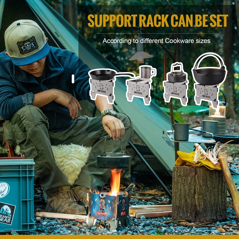 Con un cuerpo de estufa de 1mm de diámetro, su estructura de enchufe triangular proporciona alta estabilidad y pequeño volumen para el almacenamiento. Utiliza madera o carbón vegetal como combustible, Ideal para cocinar y barbacoa.