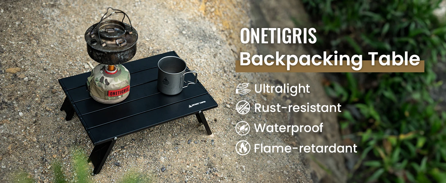 OneTigris-Mini mesa plegable portátil para acampar, mesa para Picnic al aire libre, vajilla para excursiones de barbacoa, escritorio plegable ultraligero