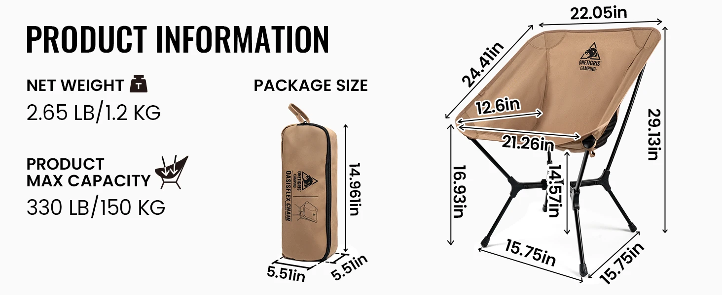 OneTigris Oasisflex-silla de Camping ultraligera, sillas plegables portátiles para acampar, senderismo, relajante, viajes, pesca, silla perezosa