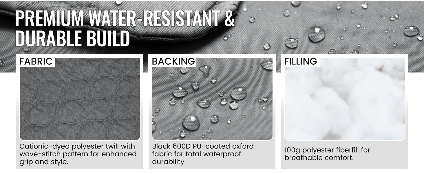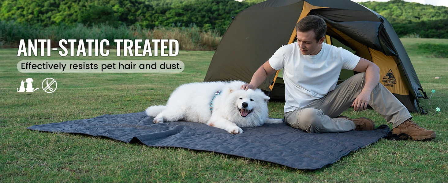 【 Waterproof & Abrasion-Resistant】This premium blanket is engineered for all-weather performance. Its specialized treatment provides exceptional durability, quick-drying properties, and resistance to mold, stains, pet hair, and wear,Fabric: Cationic Dyed Polyester Twill,Backing: 600D Polyester Oxford,Filling: 100g PET Fiberfil.