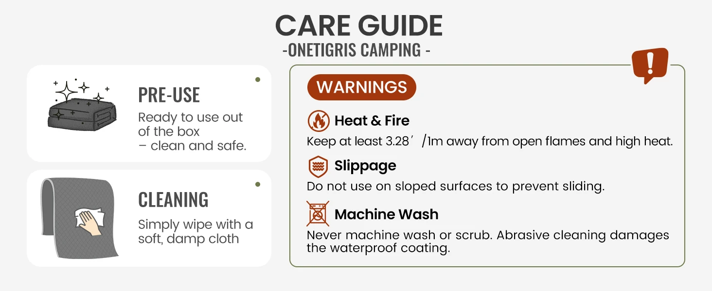 【Easy Care and Durable】 This camping blanket wipes clean with just water, dries quickly, and resists fading, pilling, and shrinkage. Built for durability, it offers a reliable 3-5 year lifespan.