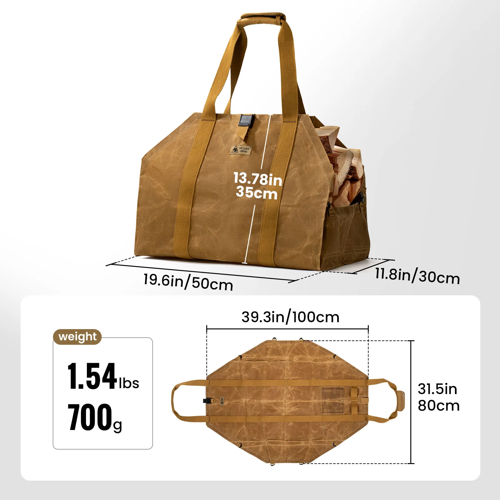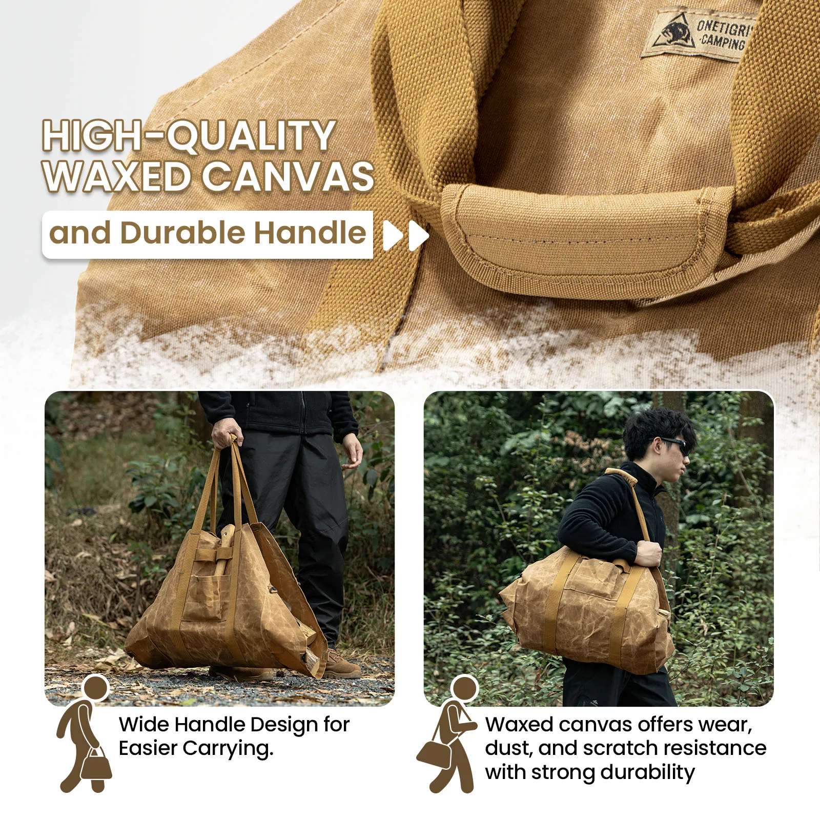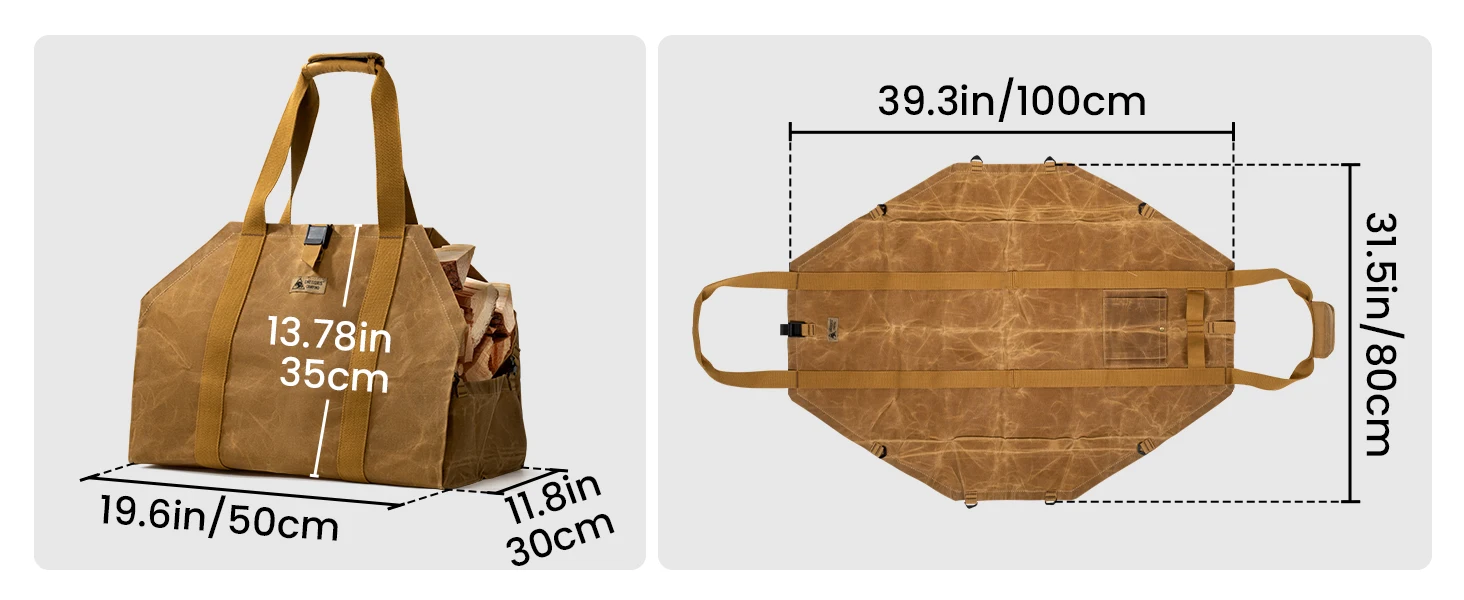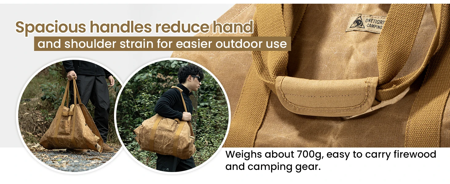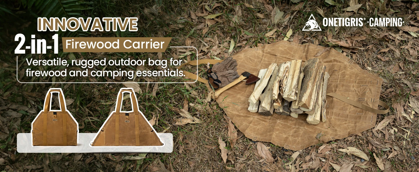 Porta leña OneTigris, bolsa porta leña 2 en 1, porta leña, porta leña de lona encerado, porta leña extra grandes con asas para fogón, camping, estufa de leña, barbacoa