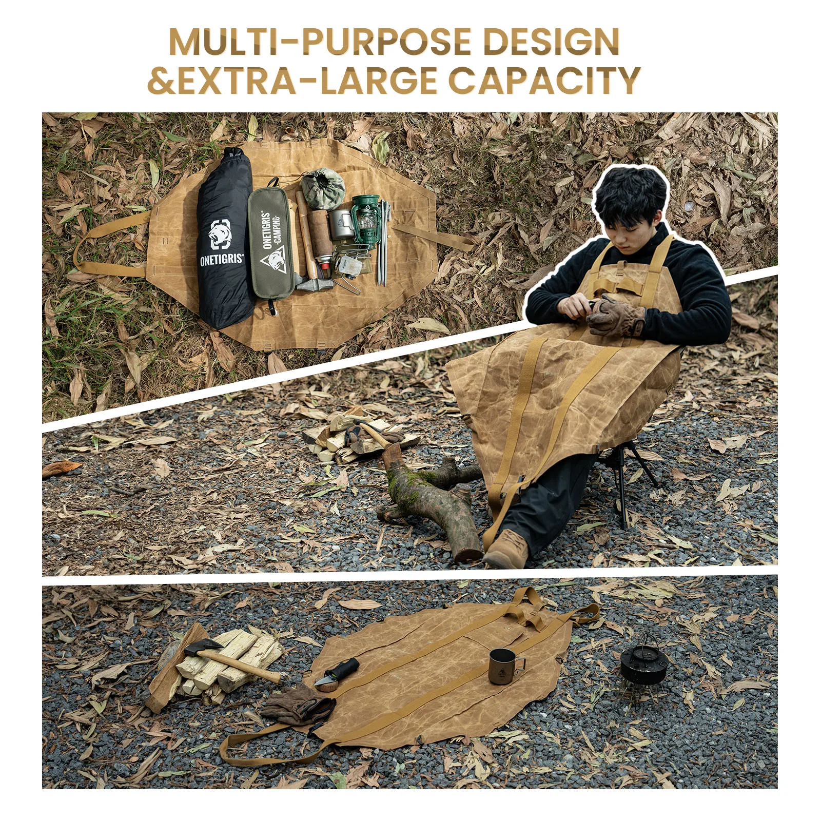 Diseño multifuncional para mayor comodidad: el porta leña OneTigris viene con un bolsillo frontal para guardar fácilmente guantes o herramientas, manteniendo todo organizado.Las correas duraderas sujetan de forma segura la leña en su lugar, evitando que se caiga.Además, el porta leña está equipado con una correa de lona perforada, lo que le permite llevar un hacha u otras herramientas, lo que lo hace perfecto para el registro al aire libre, acampar y diversas otras actividades.