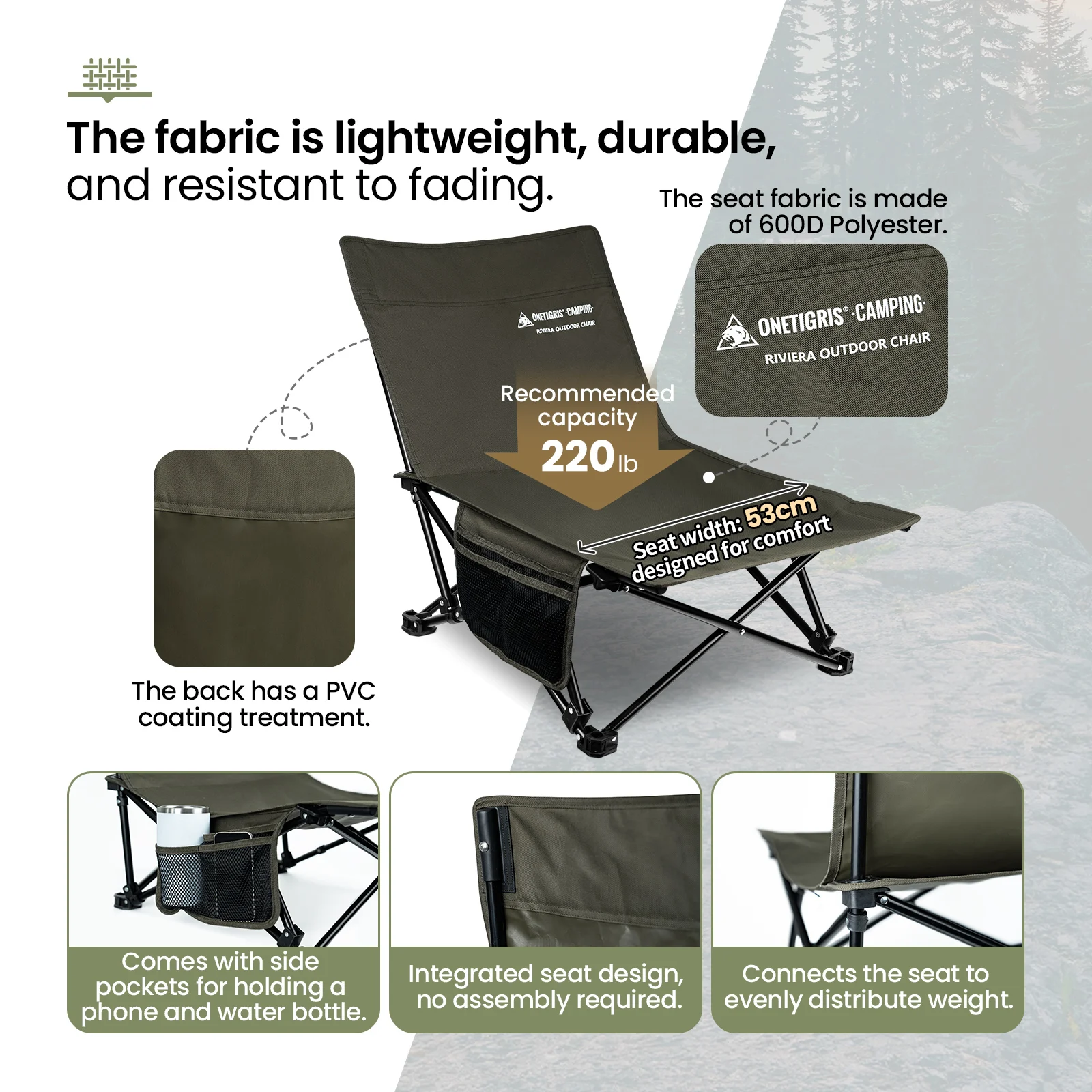 La SILLA DE exterior ONETIGRIS RIVIERA está diseñada para ser su compañero de viaje para todas las escapadas al aire libre. Ya sea que esté acampando en el desierto, disfrutando de un día en la playa o simplemente descansando en su patio trasero, esta silla está diseñada para satisfacer sus necesidades con una comodidad y durabilidad inigualables.
