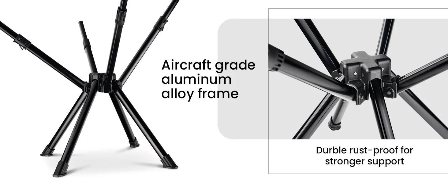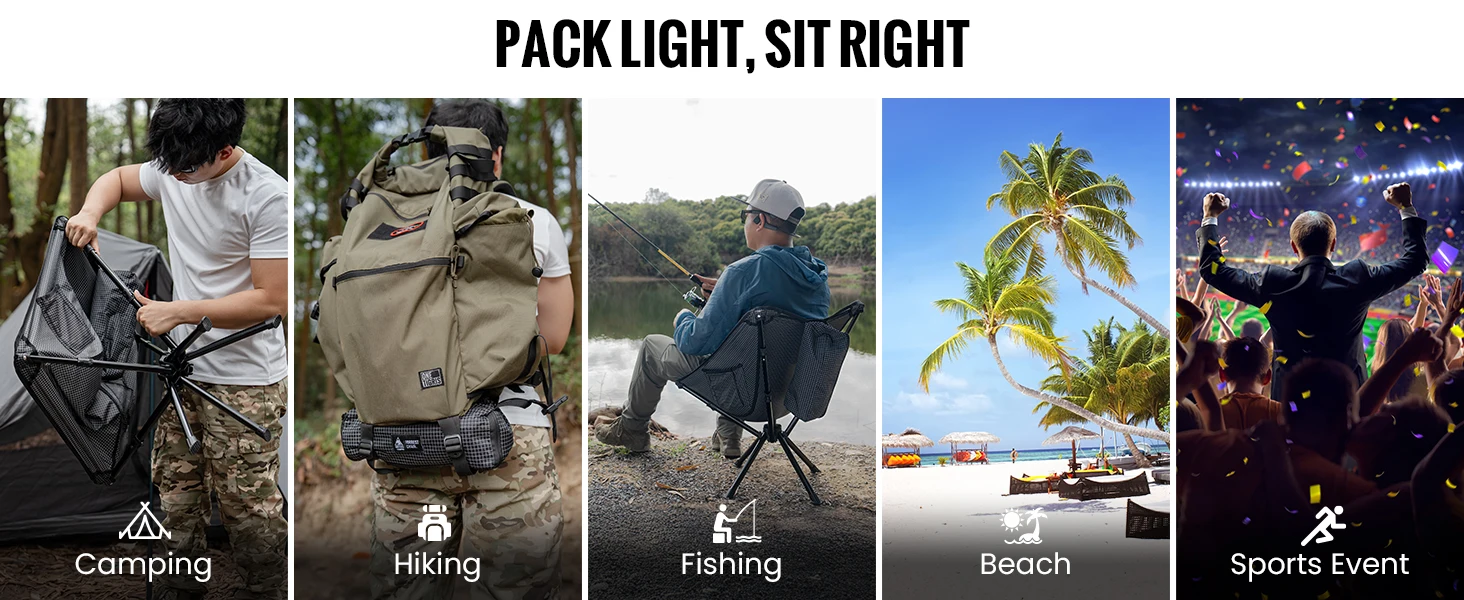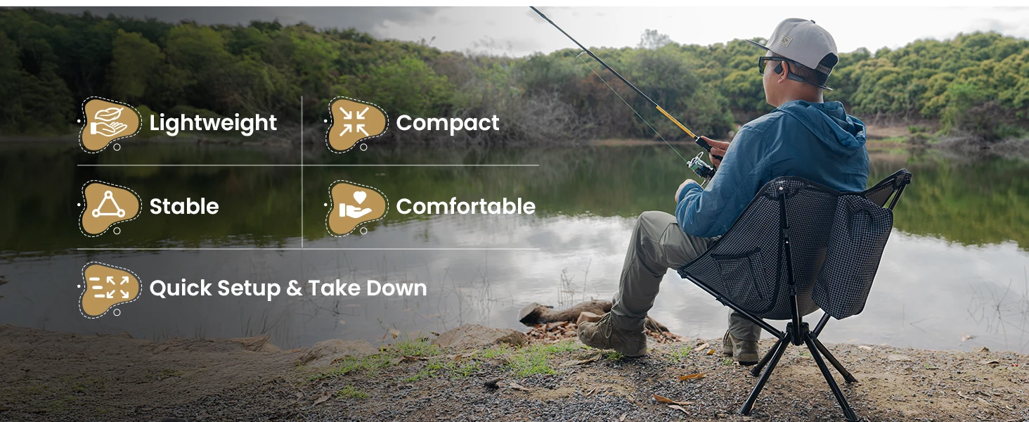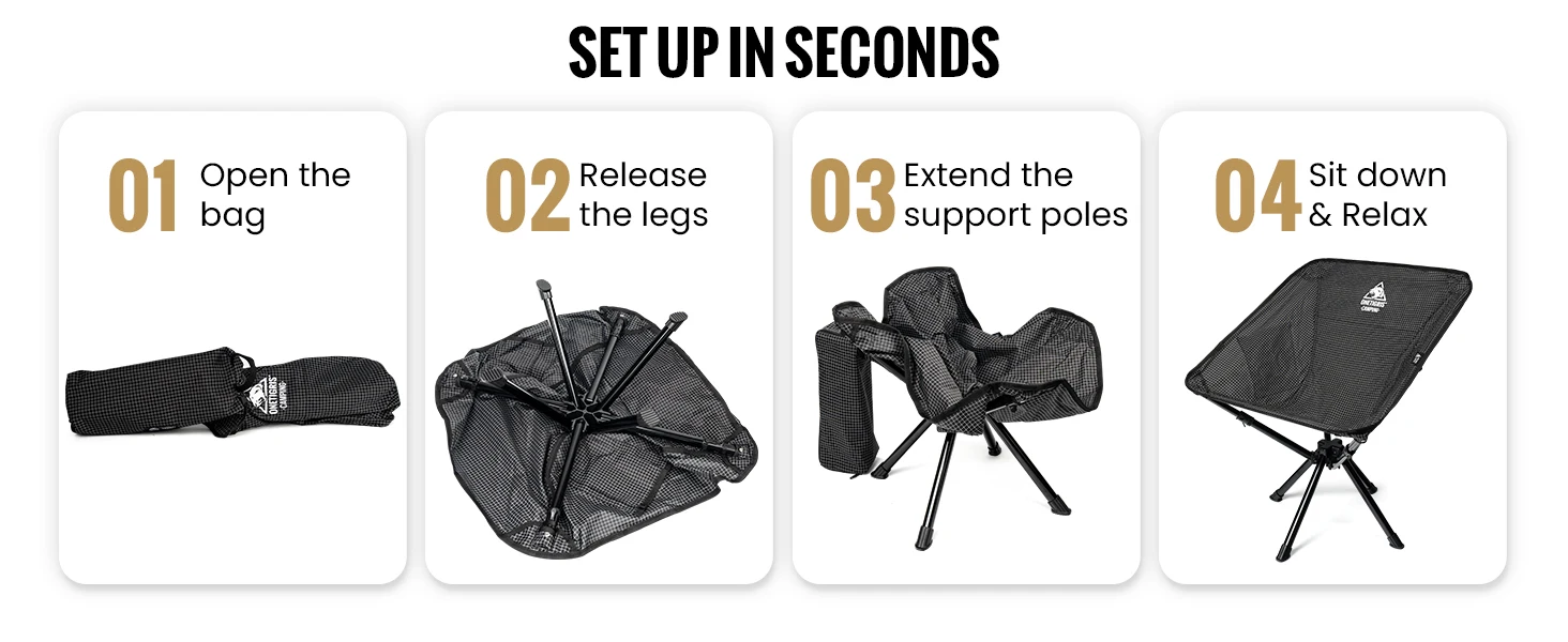 Esta silla de camping es resistente y cómoda y puede soportar hasta 220 libras (aproximadamente 100 kg). La silla es liviana y fácil de transportar, y los clientes notan que cabe perfectamente en una mochila de 100 litros y en una bolsa de viaje lateral. Aprecia el tamaño compacto y la facilidad de montaje, plegado y almacenamiento en comparación con las sillas de camping normales.