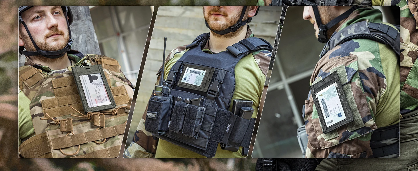 You may need to display modular patches, such as our new small i.d. window but will not be carrying a pack, bag, or uniform that has patch panels. Use Badger(TM) instead. It has a neck-lanyard but it can also be worn on a belt or woven into MOLLE on modular packs/bags. There is even a basic wallet/organizer on the other side!