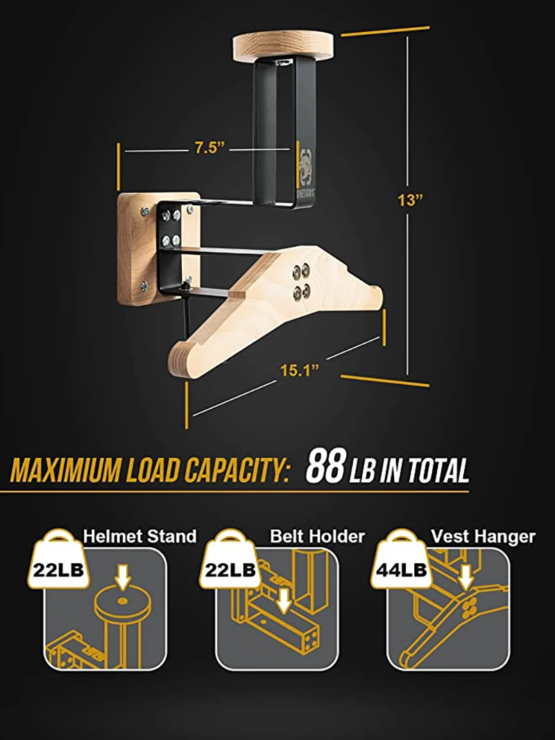 Capacidad de carga de servicio pesado: el soporte de pared OneTigris Tactical Gear puede soportar hasta 88 libras, lo que lo convierte en una solución de almacenamiento resistente y confiable para su equipo táctico. Tiene una capacidad de bastidor de casco de 22 libras, capacidad de bastidor de chaleco de 44 libras y capacidad de bastidor de cinturón de 22 libras, lo que garantiza que su equipo esté seguro.