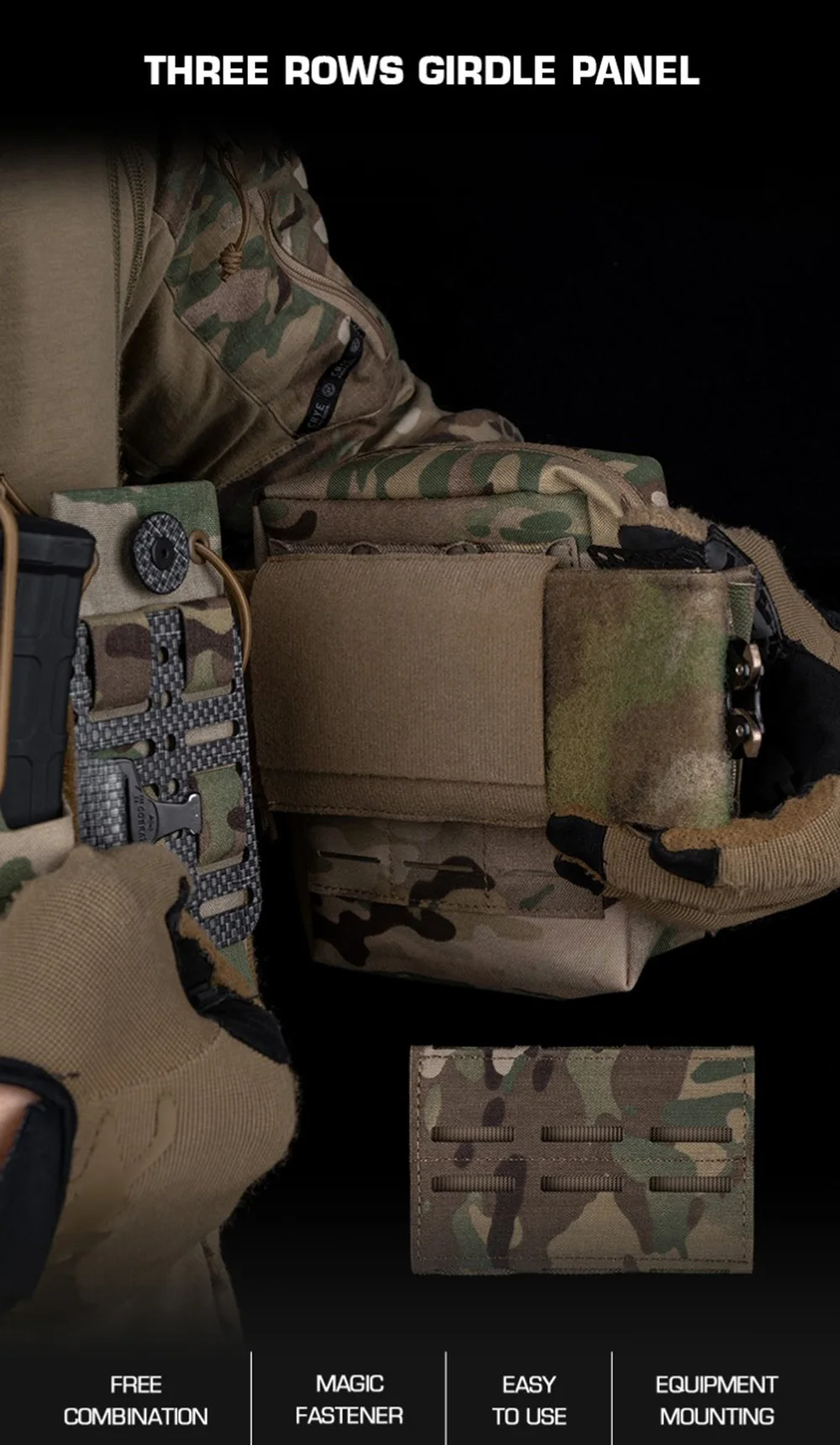 En la parte delantera se pueden montar todo tipo de bolsas auxiliares de caza de tres filas que son compatibles con el sistema M.