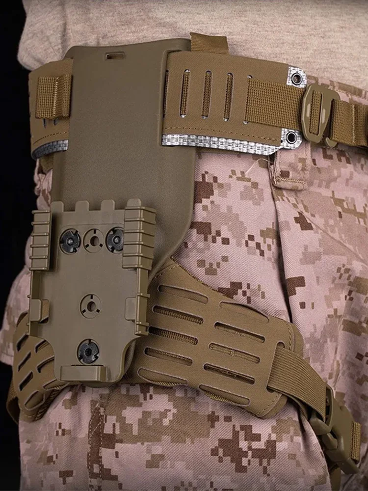 1. La almohadilla de patada lateral está diseñada para ser compatible con fundas y adaptadores que utilizan el sistema de montaje Safariland de 3 orificios, por lo que es un ajuste perfecto para Safariland Low Ride UBL o True North Concepts MHA.