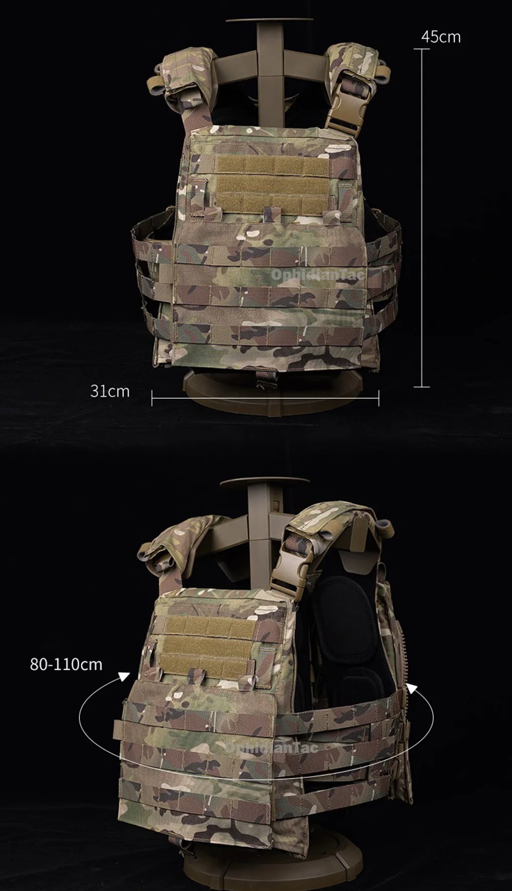 Bucles de correas para PTT y otros dispositivos de comunicación, sistema MOLLE en la cremallera frontal YKK en la parte posterior para paneles (la cremallera es No. 10). Hebilla de liberación rápida y funda suave para el hombro, fácil de poner y quitar Forro cómodo y transpirable, transpirable, disipación de calor, cómodo Mango de arrastre reforzado Utilice una hebilla triple deslizante o una cuerda de liberación rápida para instalar el cinturón