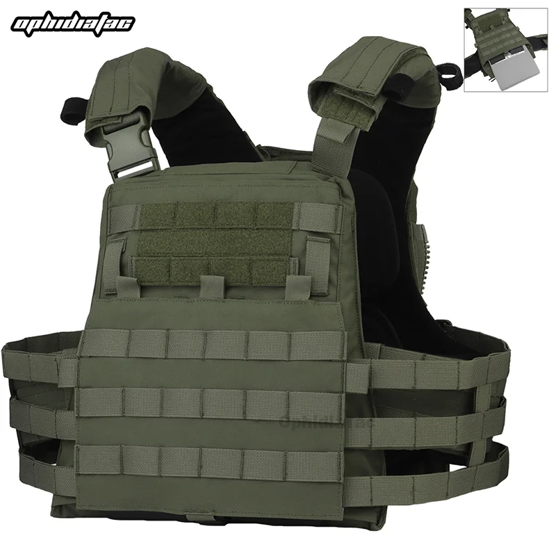 Bucles de correas para PTT y otros dispositivos de comunicación, sistema MOLLE en la cremallera frontal YKK en la parte posterior para paneles (la cremallera es No. 10). Hebilla de liberación rápida y funda suave para el hombro, fácil de poner y quitar Forro cómodo y transpirable, transpirable, disipación de calor, cómodo Mango de arrastre reforzado Utilice una hebilla triple deslizante o una cuerda de liberación rápida para instalar el cinturón