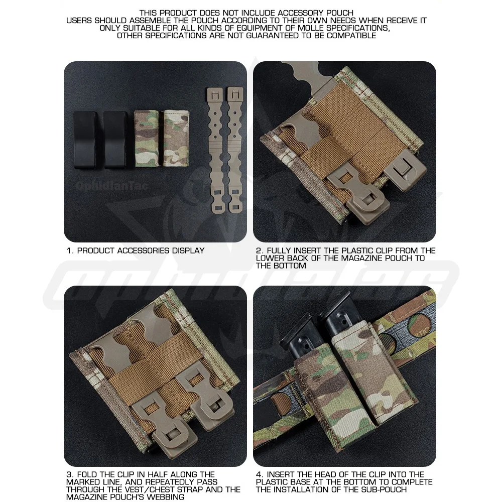 3.El complemento MOLLE, con complemento Molle, se puede fijar fácilmente en cualquier equipo, es adecuado para cinturones y varios cinturones convencionales del mercado.