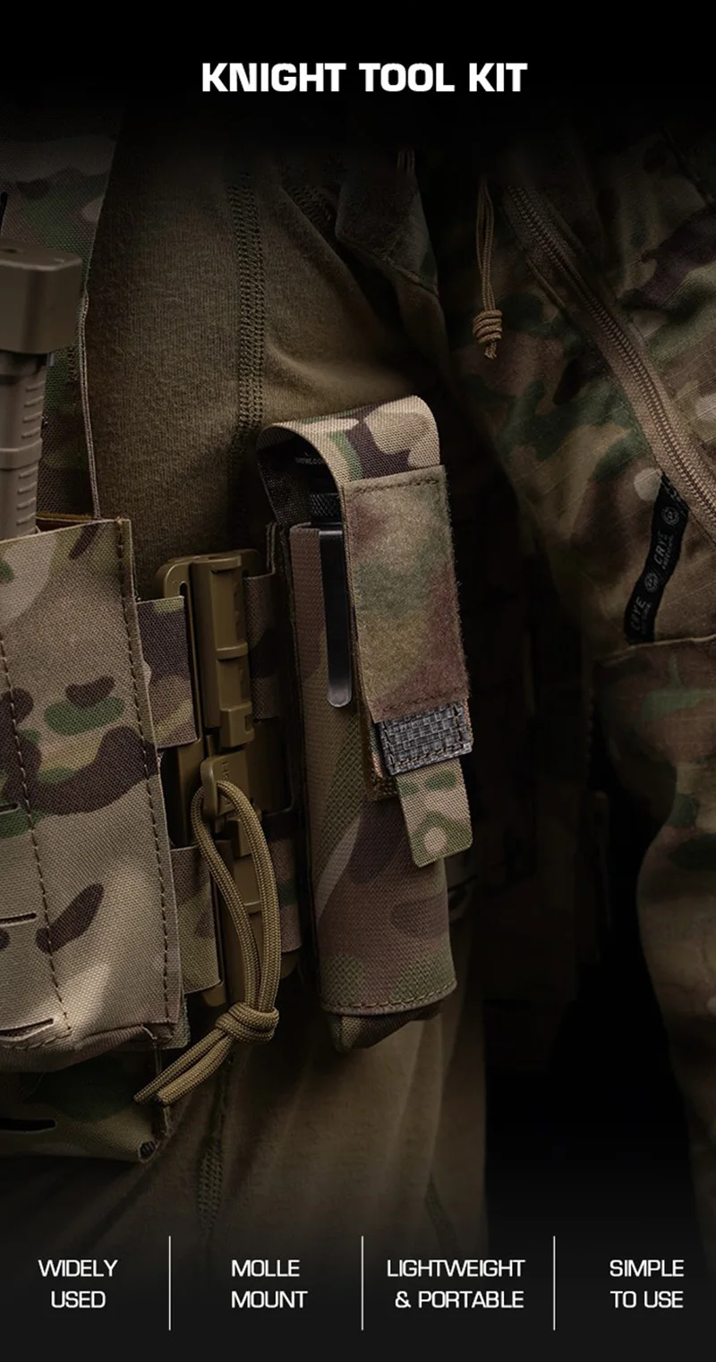 1. Este kit de herramientas compacto es versátil y puede contener múltiples herramientas o artículos, como un cuchillo o una linterna.