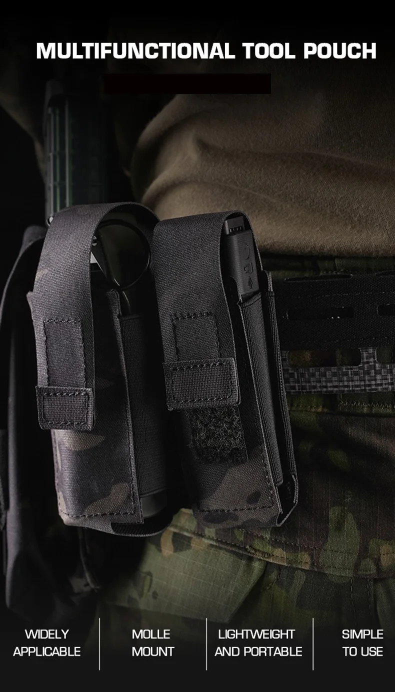 2.Tejido elástico a ambos lados de la bolsa MOLLE: El tejido elástico puede adaptarse a cualquier forma del contenido y fijarlo en su lugar.La funda de spray de pimienta MOLLE se puede utilizar no solo como soporte para rociador OC, sino también como bolsa para granadas aturadas M84, bolsa para bombas flash, pequeño soporte para radio portátil de caza y bolsa para cargadores de 9 mm.