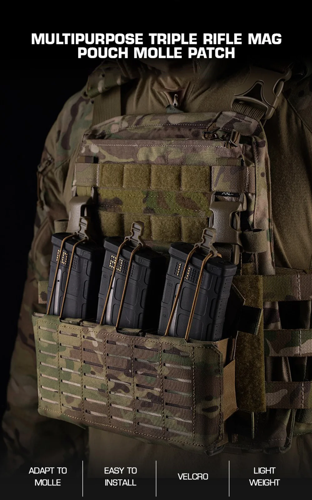 Nombre del producto: Parche MOLLE de bolsa para revistas de rifle triple multiusos
