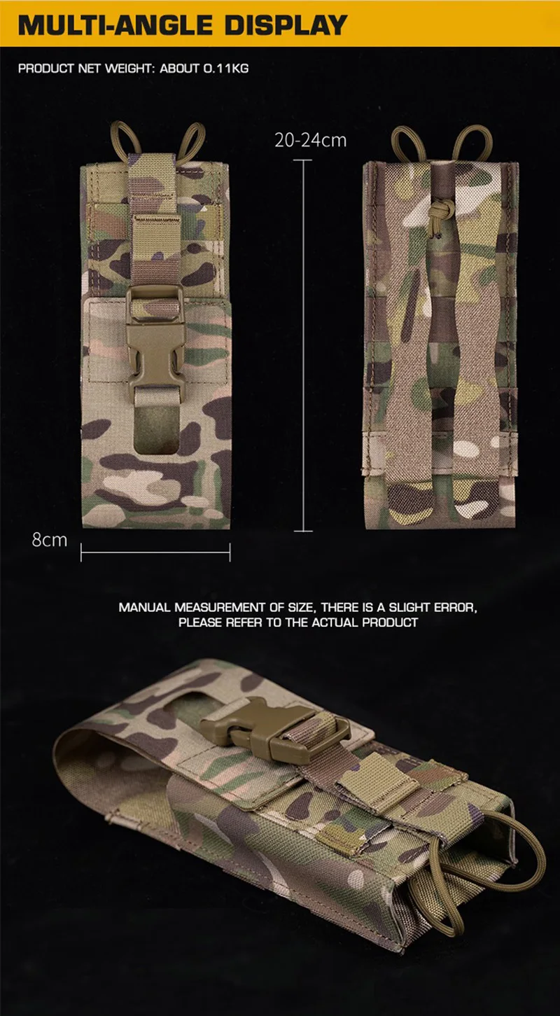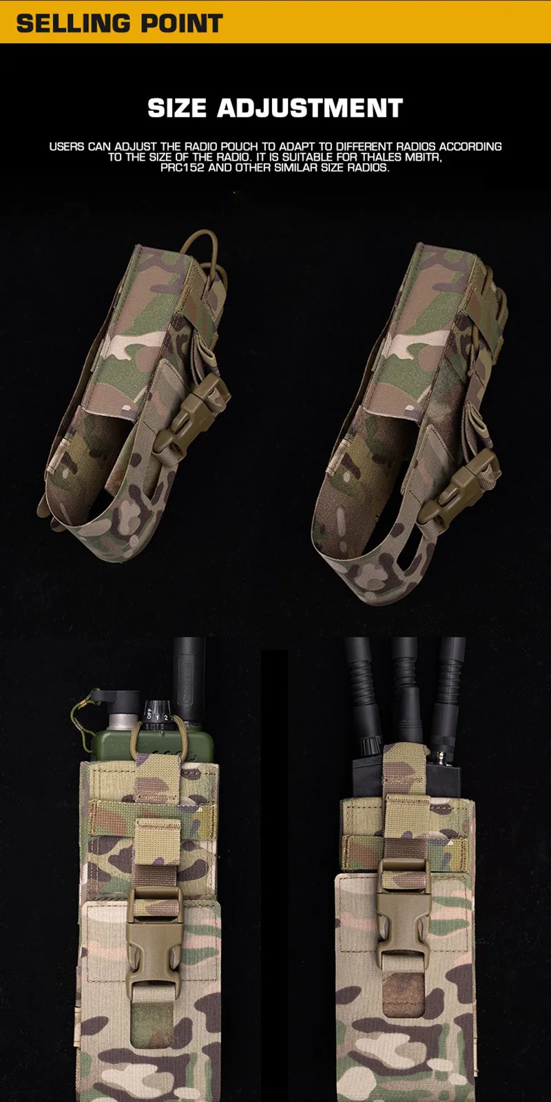 1.Ajuste de tamaño, los usuarios pueden ajustar la bolsa del walkie-talkie de acuerdo con el tamaño del walkie-talkie para adaptarse a diferentes walkie-talkies.Adecuado para Thales MBITR.PRC152 y otros walkie-talkies de tamaño similar.