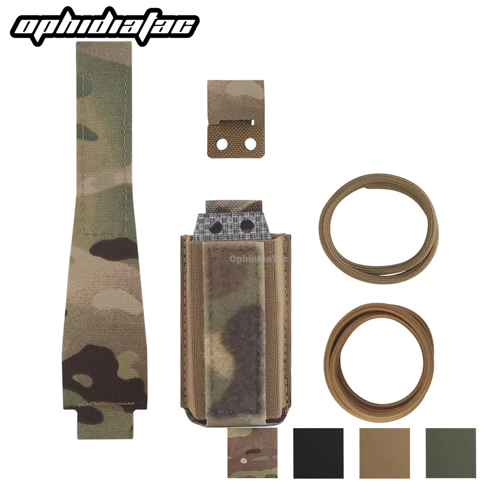 Cada bolsa vendrá con una solapa extraíble y un kit de pestaña elástica. Estos accesorios se pueden utilizar para guardar artículos más pequeños (multiherramientas pequeñas, cargadores de una sola pila 1911, etc.) y proporcionar retención adicional. La bolsa sujetará de forma segura un cargador sin cobertura/retención adicional de estos accesorios.