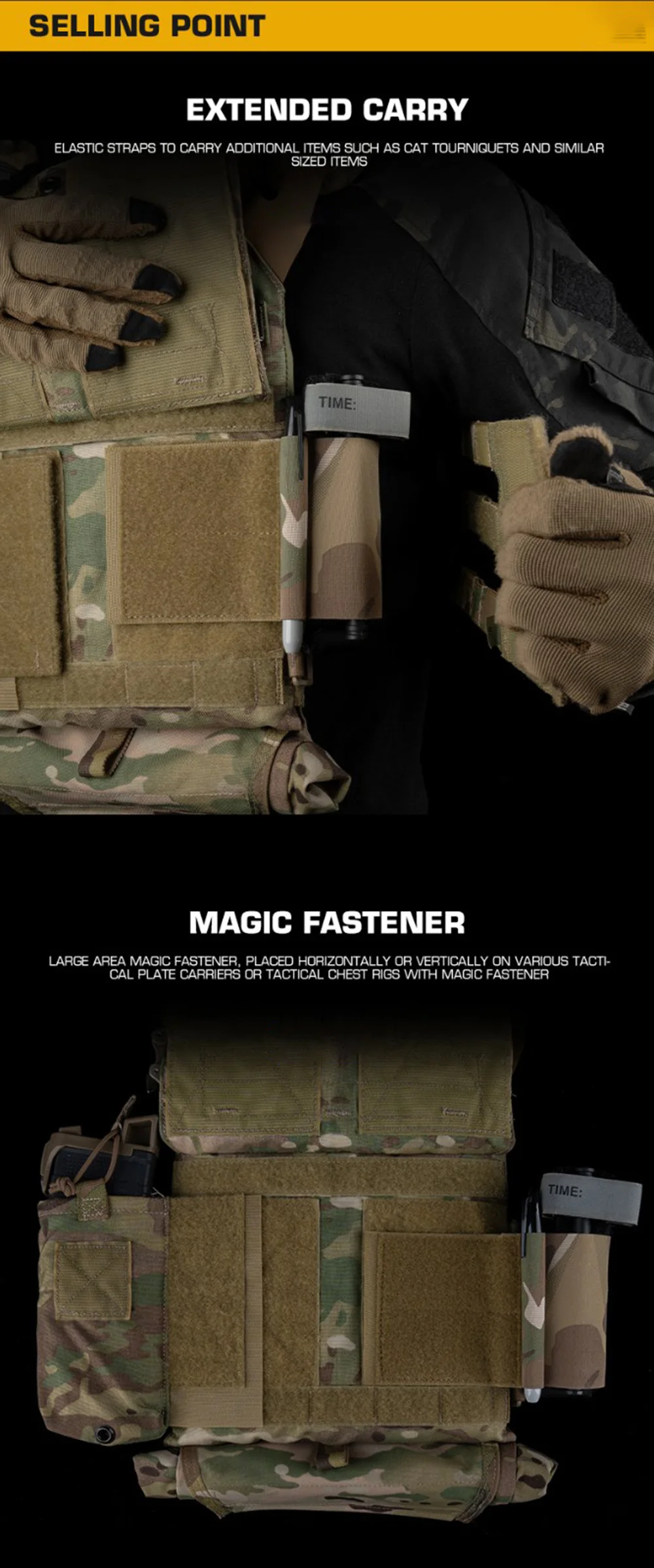Transporte extendido Correas elásticas, pueden transportar torniquetes CAT adicionales y otros artículos de tamaño similar.