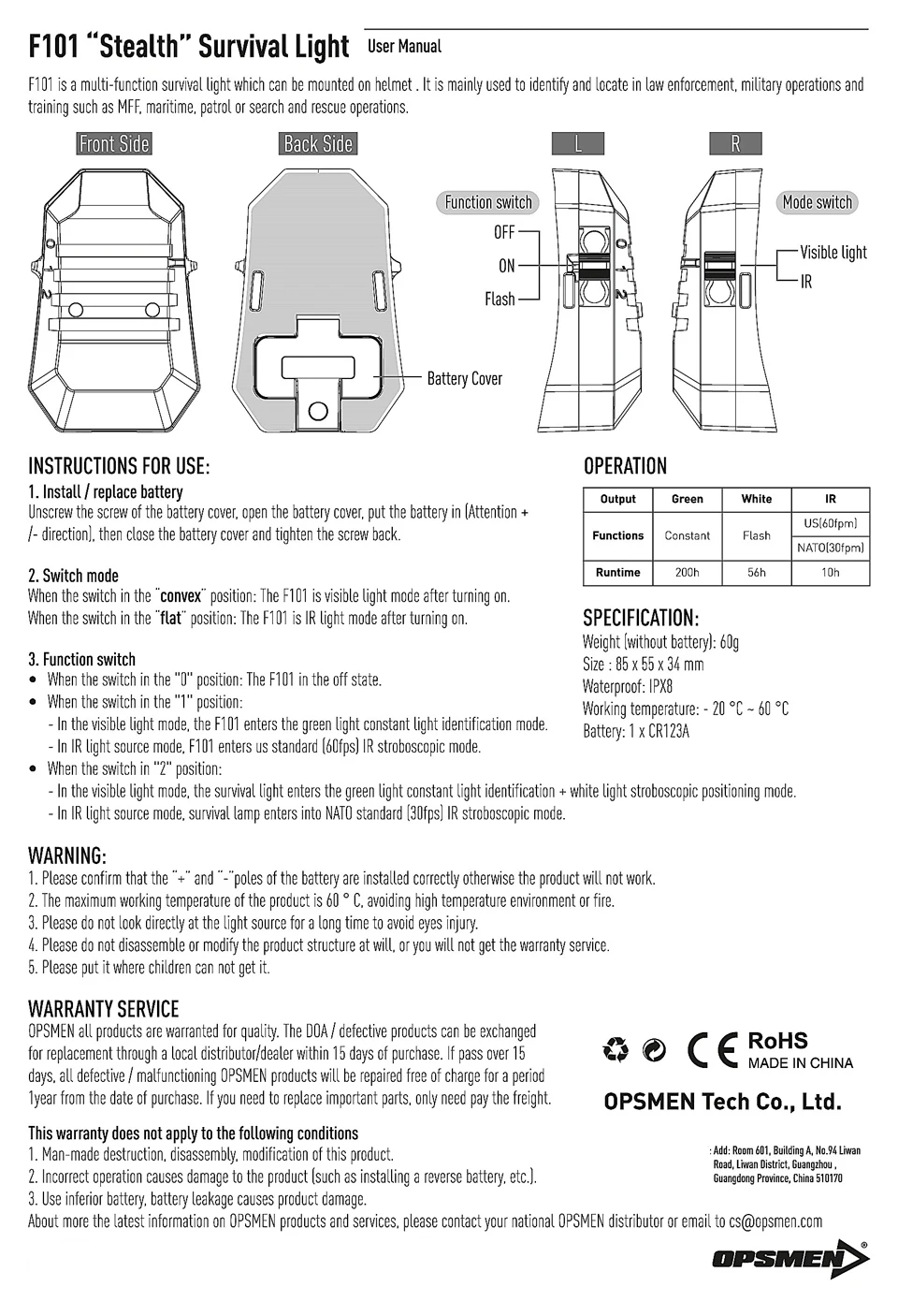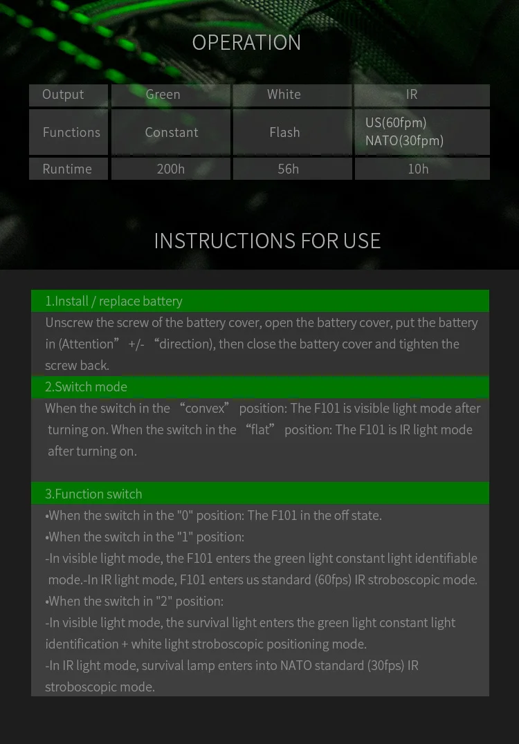 OPSMEN-luz de Flash de supervivencia, luz de Flash de explosión multifunción, marcador de socorro de trabajo, luz estroboscópica funcional, luz IR
