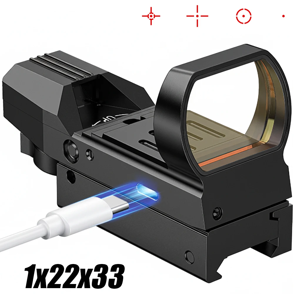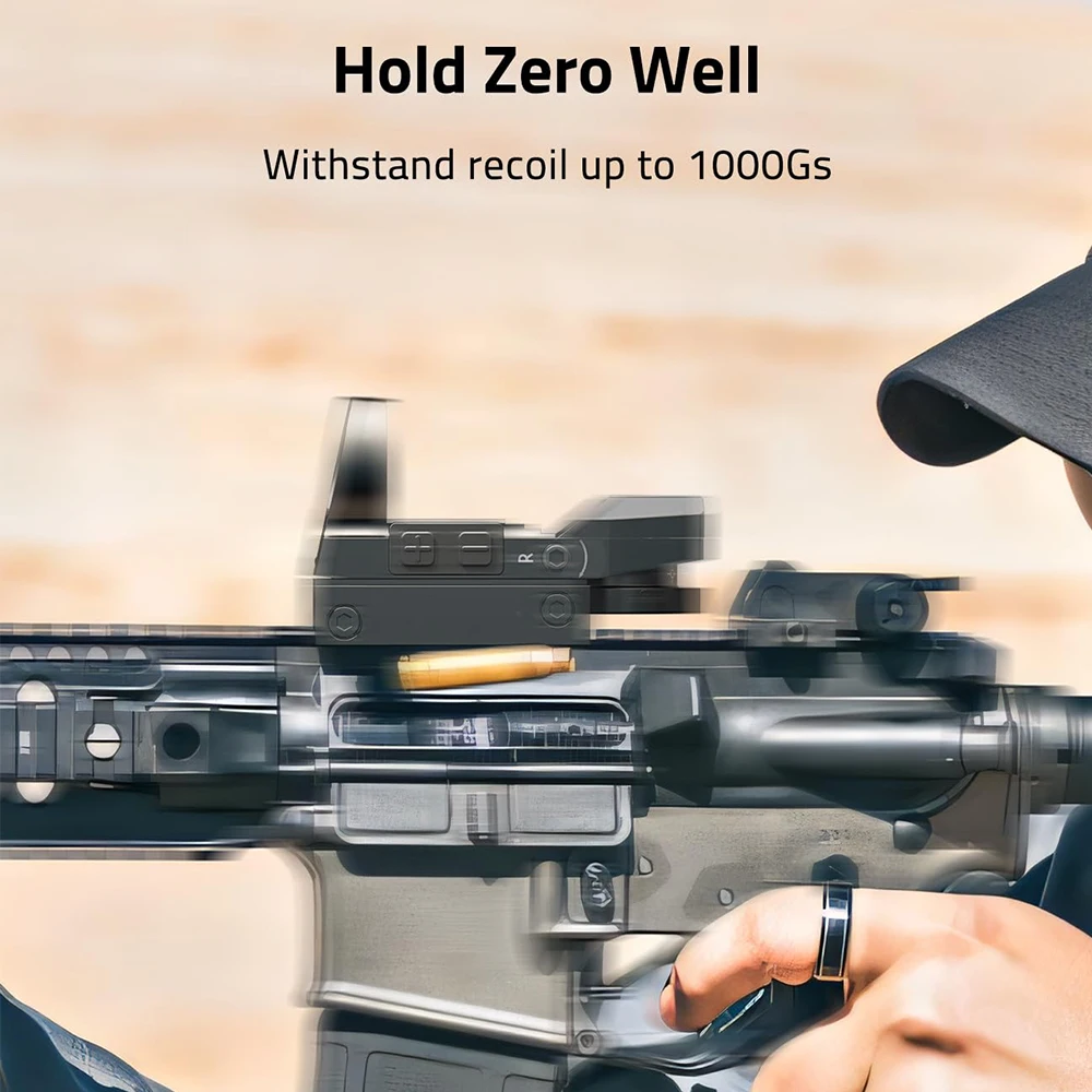 - Y esta mira de punto rojo reflejo puede reducir el deslumbramiento y hacer que tus ojos estén más cómodos.