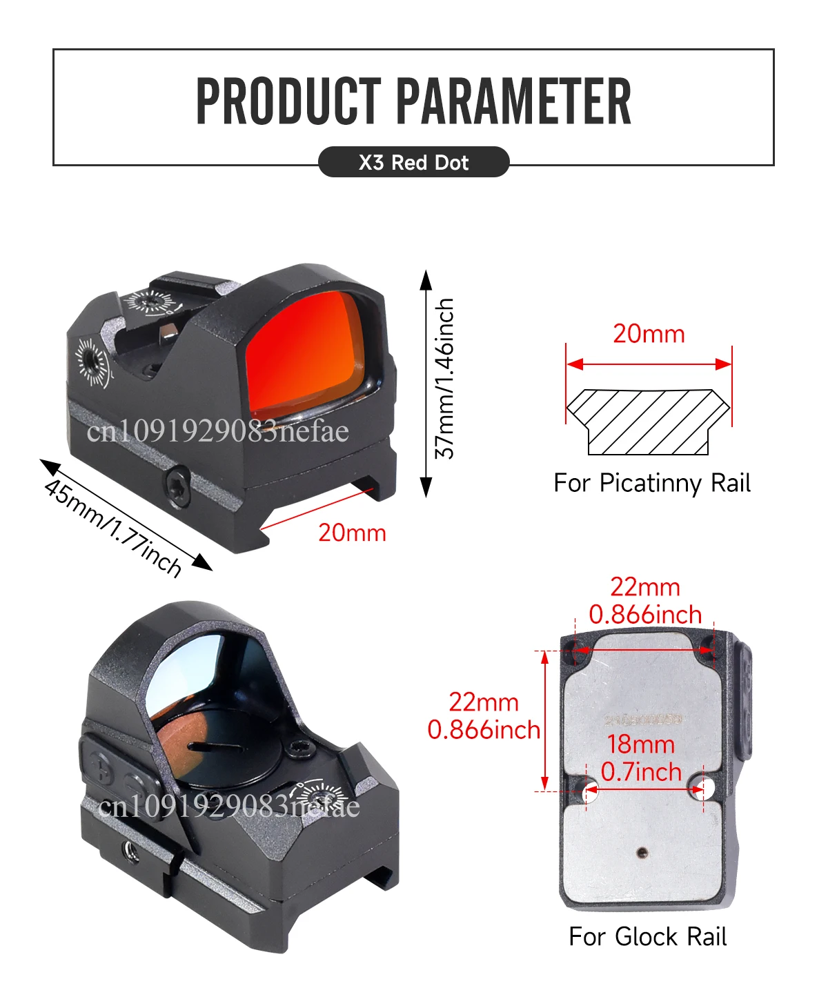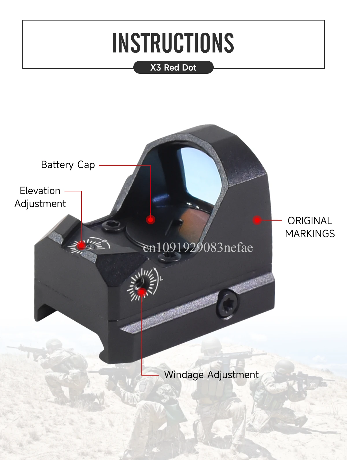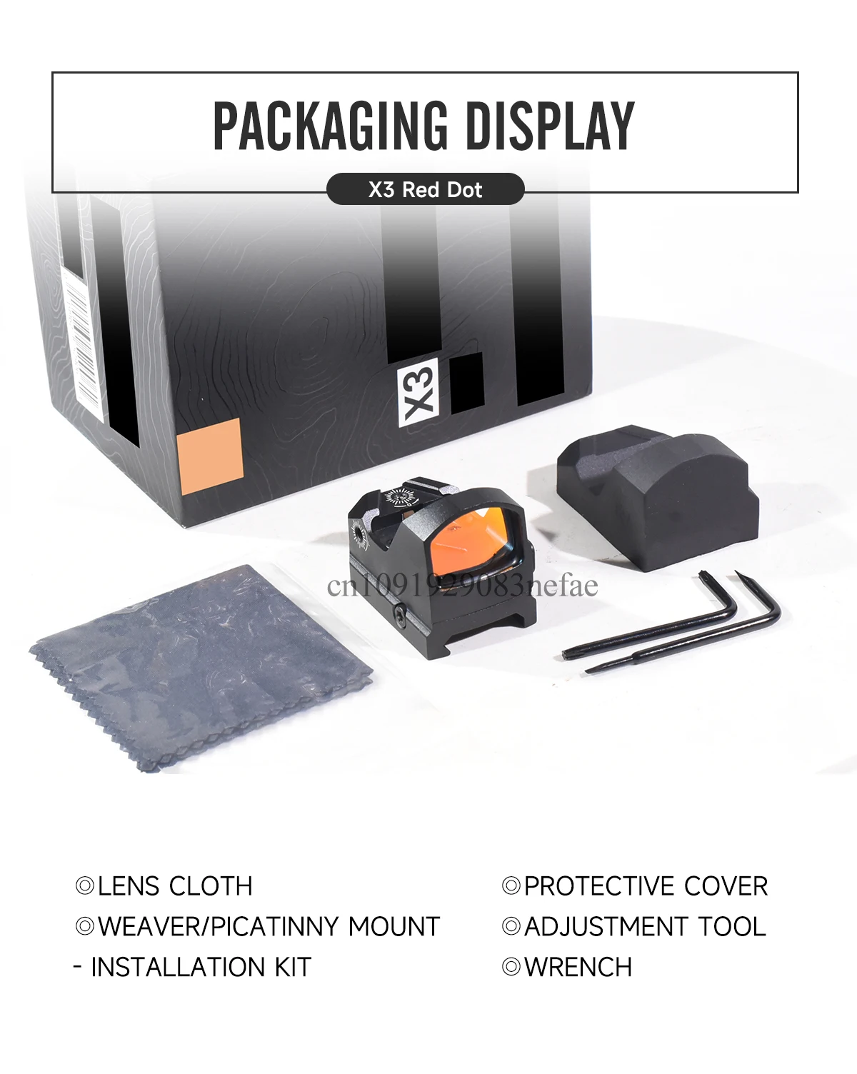 Óptica táctica X3 PRO 3 MOA, punto rojo compacto, mira, agitar despierto, impermeable, a prueba de golpes, parallax, ajuste libre, soporte de Base para pistola y Rifle