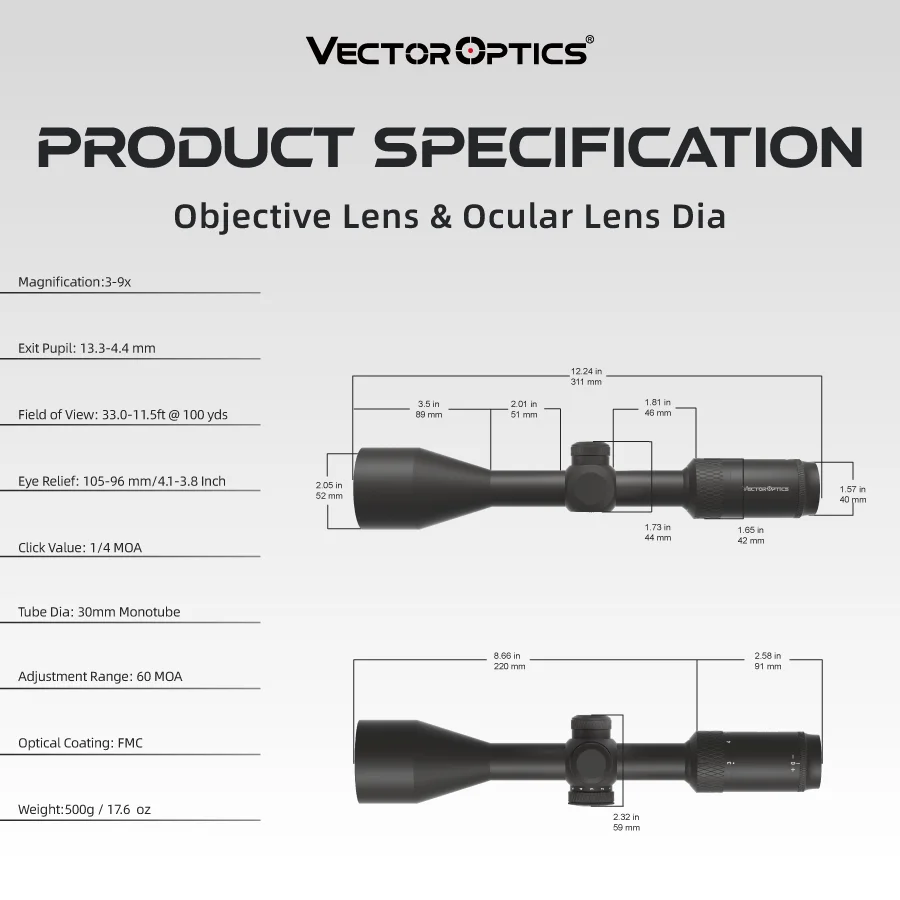 Accessories: one pair of 25.4mm weaver scope rings, lens caps and cleaning cloth etc