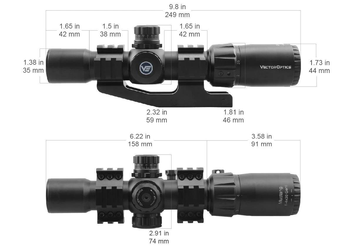 Viene con soporte Picatinny de una pieza de 30 mm, tapas abatibles y soporte de palanca de anillo eléctrico