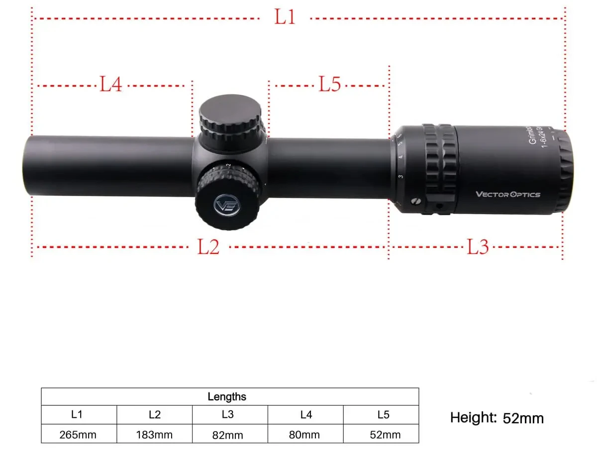 20.0° F.O.V @ 1x Power, 4" de alivio ocular largo, imagen súper nítida de borde a borde