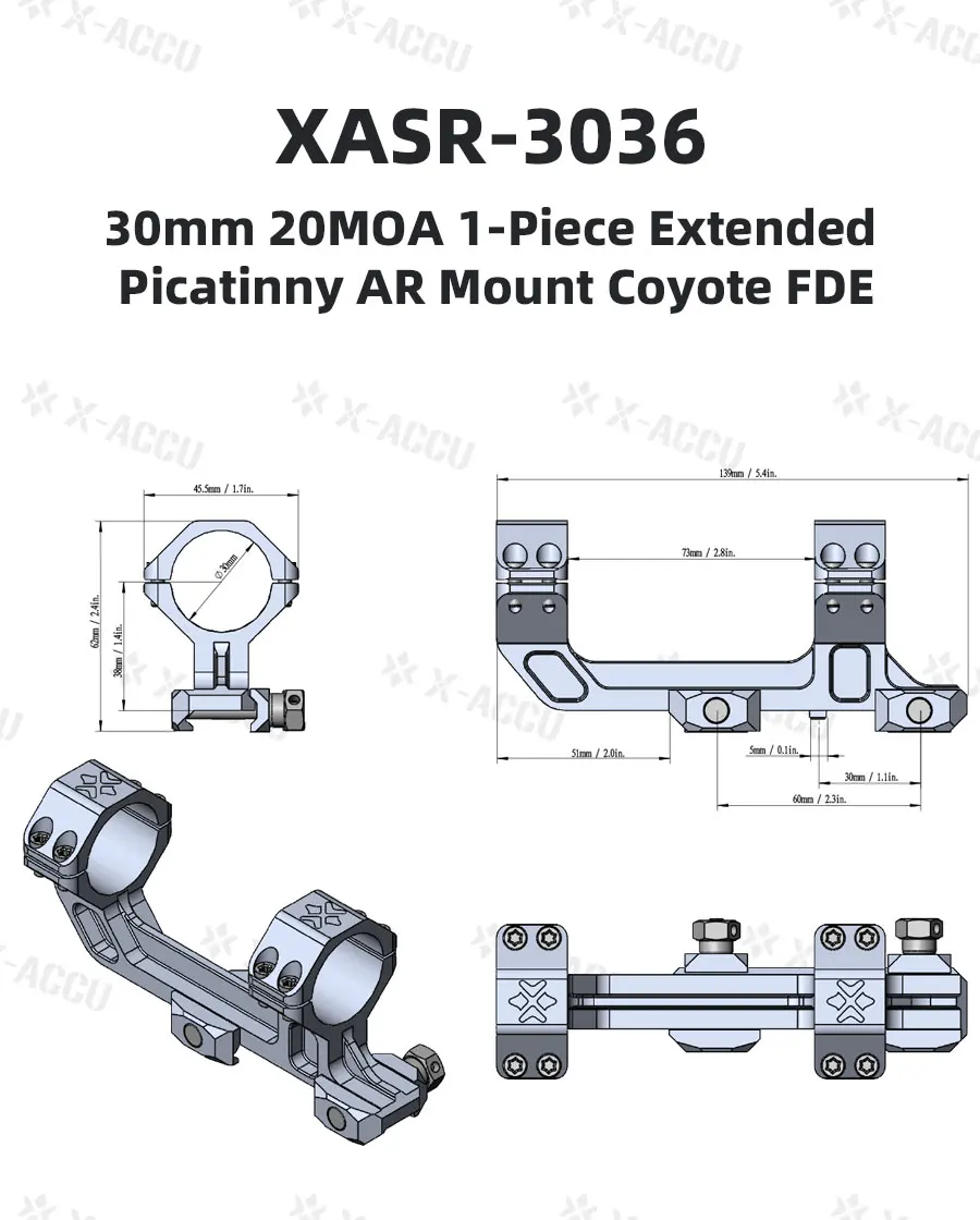 30mm 20MOA 1 pieza Picatinny AR Mount Coyote FDE extendido