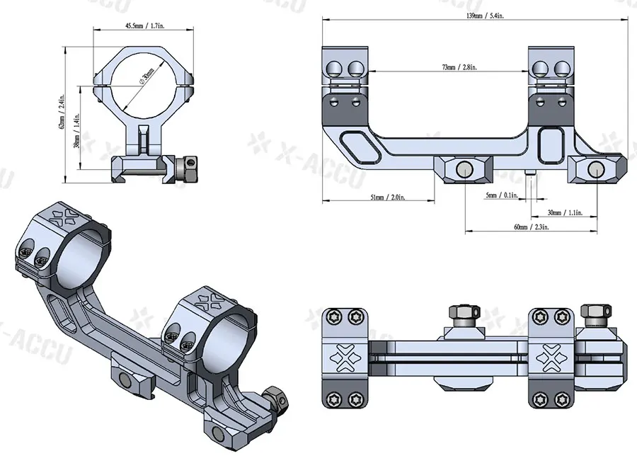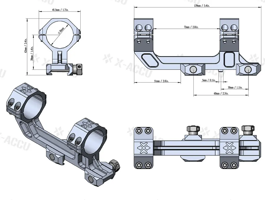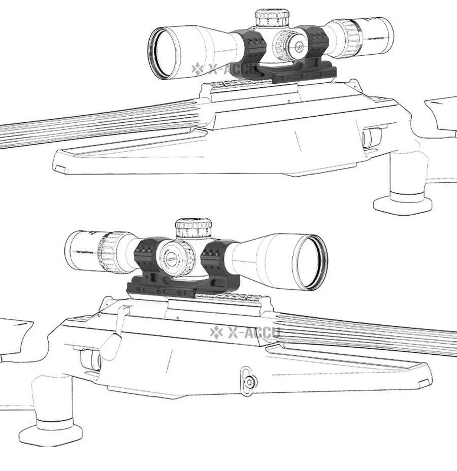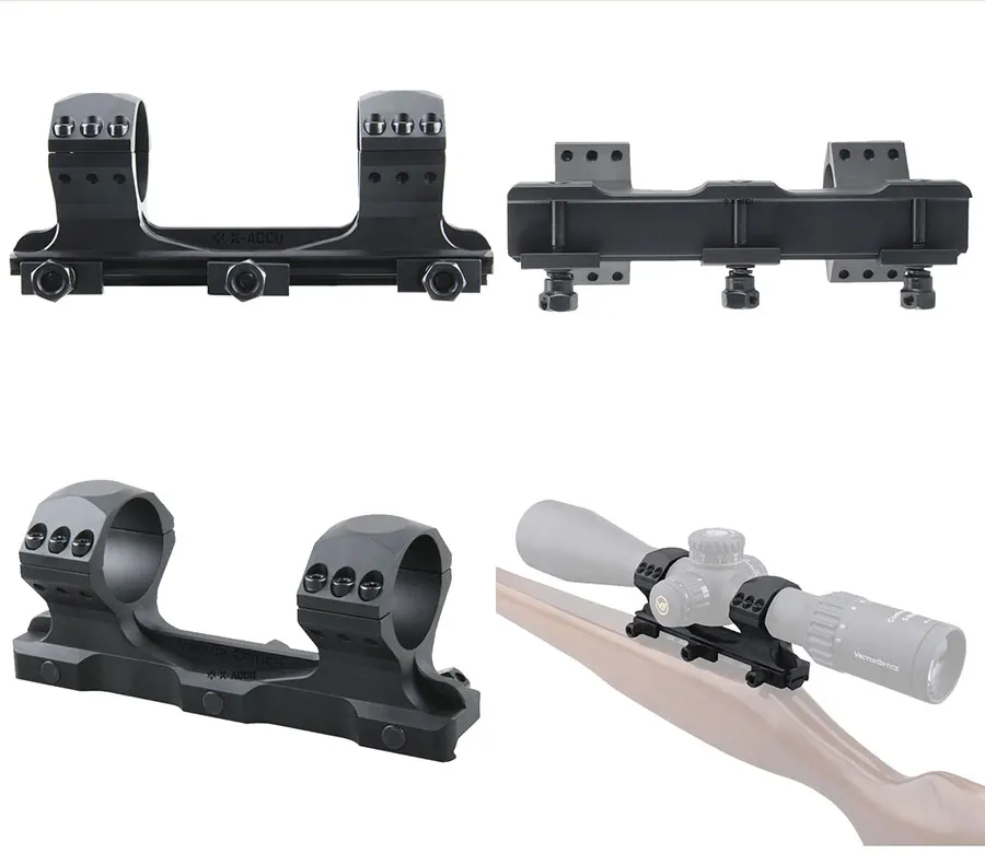 Anodizado duro, montura Picatinny de 21 mm con 3 pernos cruzados y anillos antiretiro, ajuste de lente objetivo de alcance máximo de 65 mm