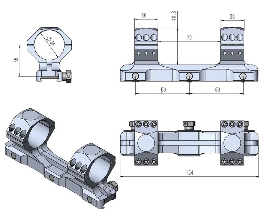 40 mm 1,6 pulgadas de abajo al centro del anillo, seis tornillos por anillo, extremadamente preciso con mecanizado CNC completo