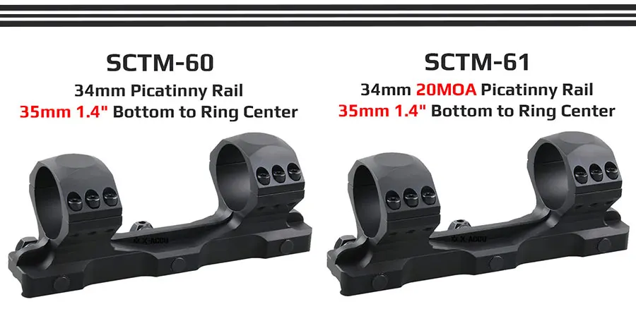 20 MOA: Un soporte de 20 MOA tiene incorporado un ligero ángulo hacia abajo, inclinando efectivamente el visor hacia abajo con respecto al orificio del rifle.Esto se utiliza para disparos de largo alcance.Inclinar el telescopio hacia abajo, permite que el tirador utilice más ajustes de elevación interna del telescopio para apuntar a distancias más lejanas, compensando la caída de la bala en largas distancias.