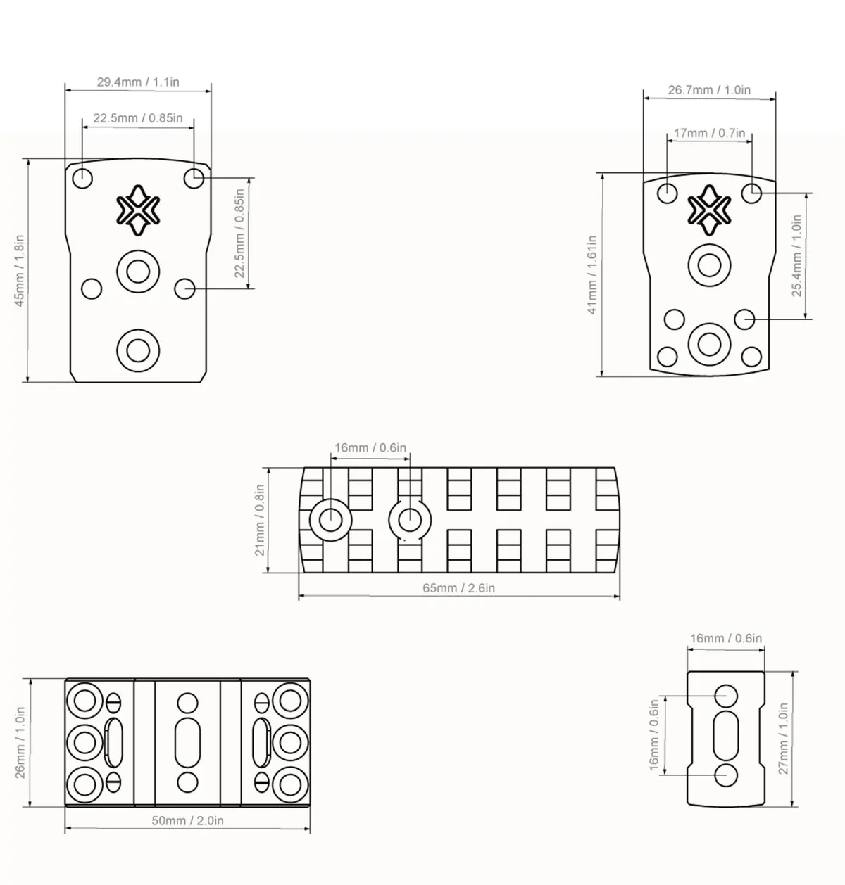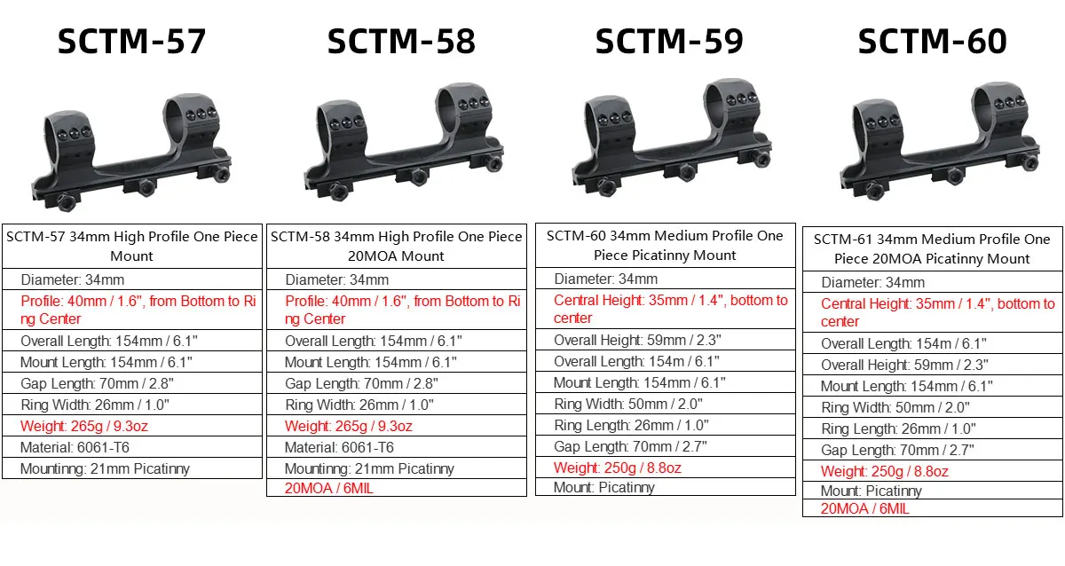 Óptica vectorial 34 mm soporte Picatinny de una pieza mediano