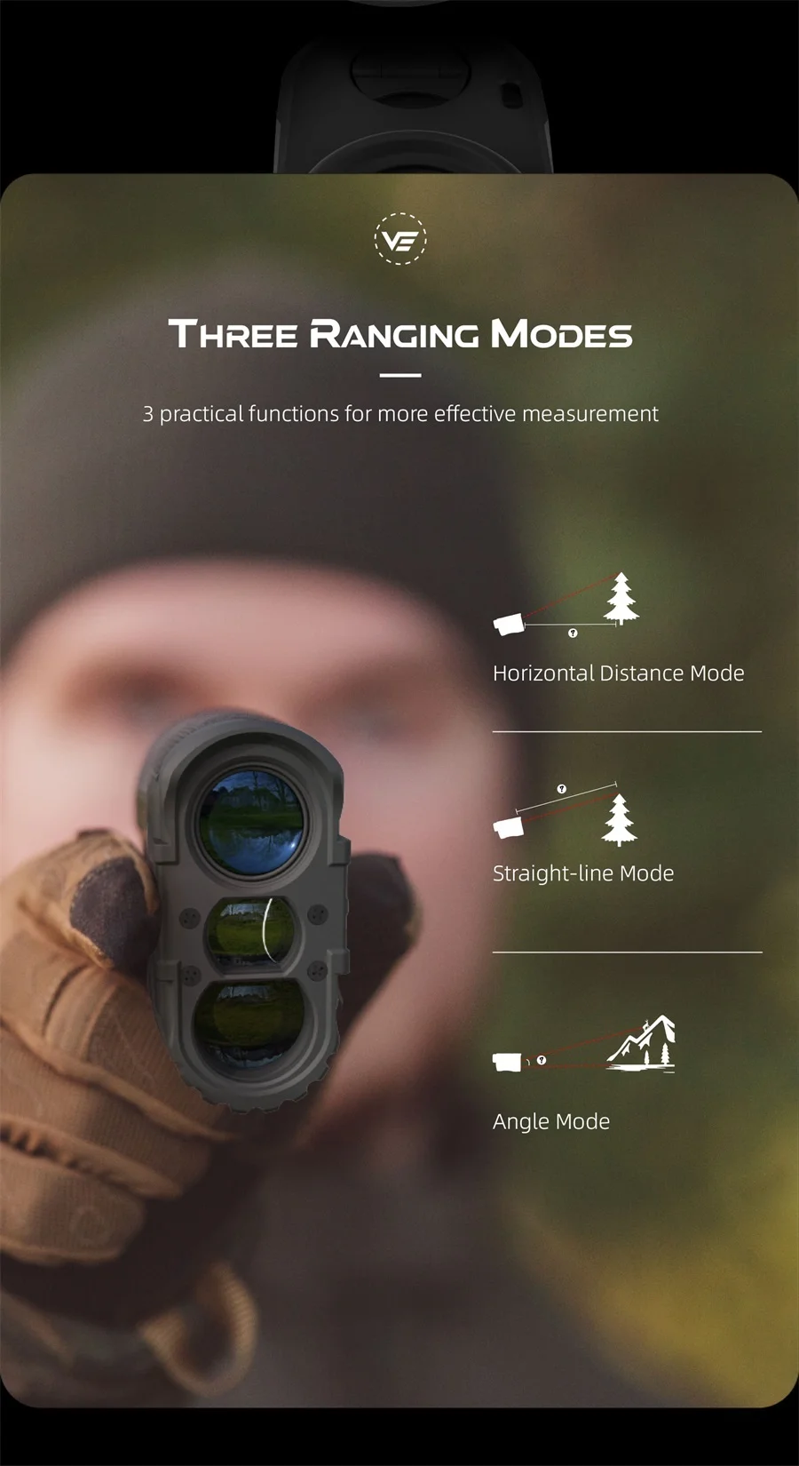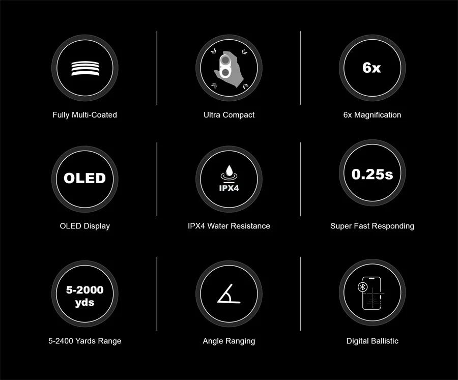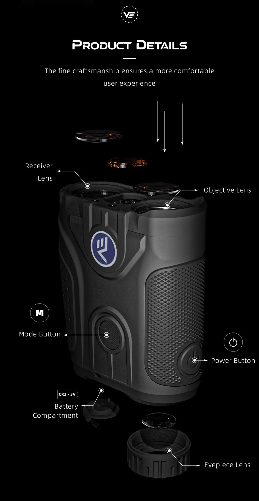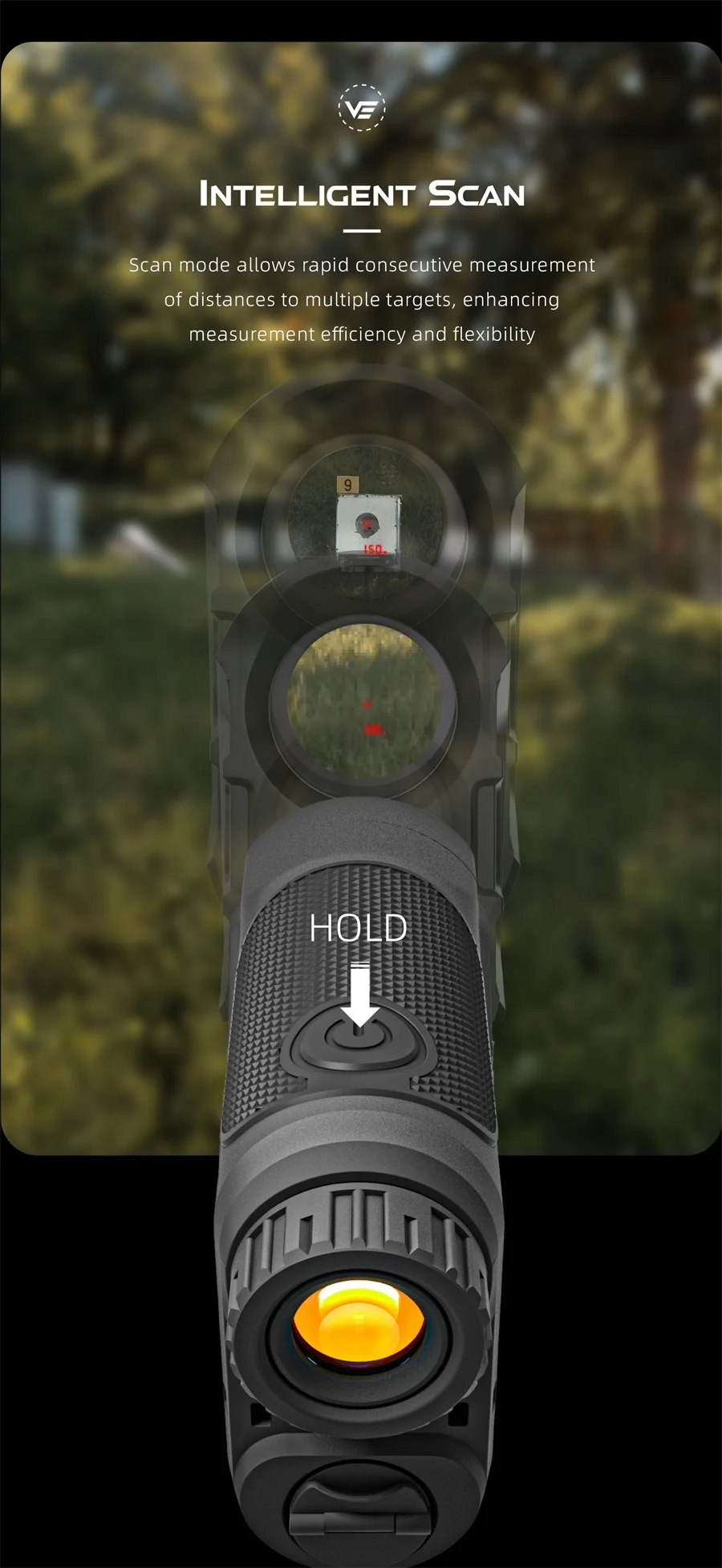 Rango de ciervos de 900 Yds, rango PinLock de 500 Yds, modo de escaneo para adquirir múltiples objetivos.
