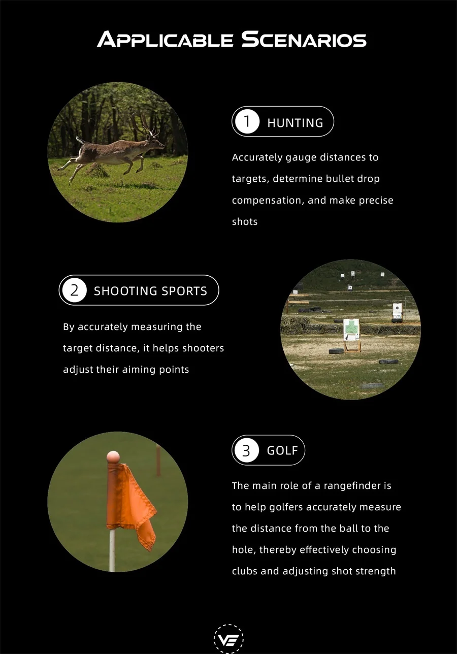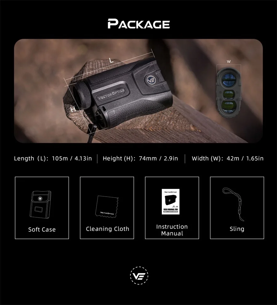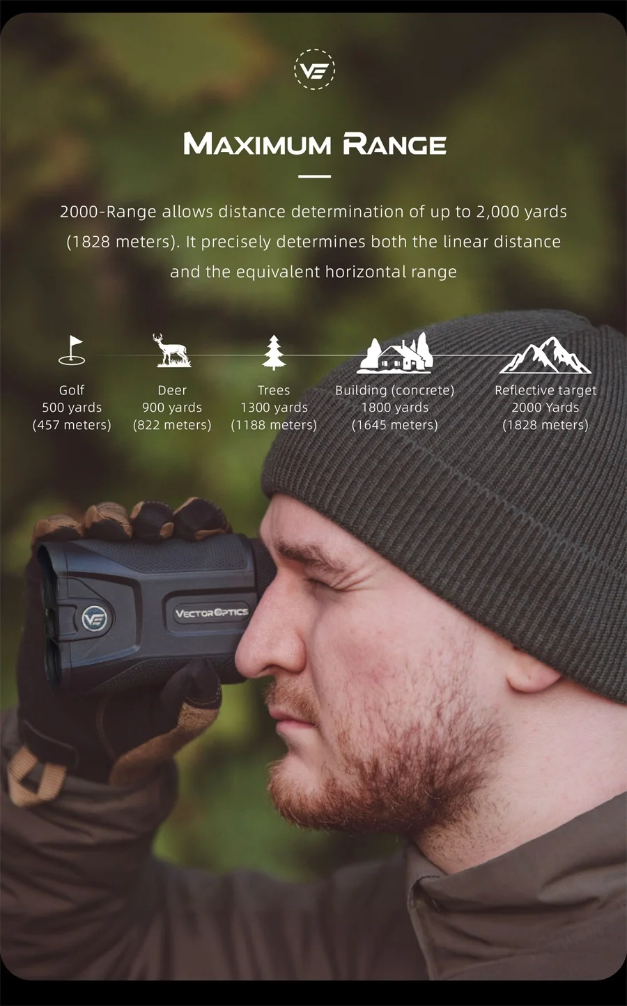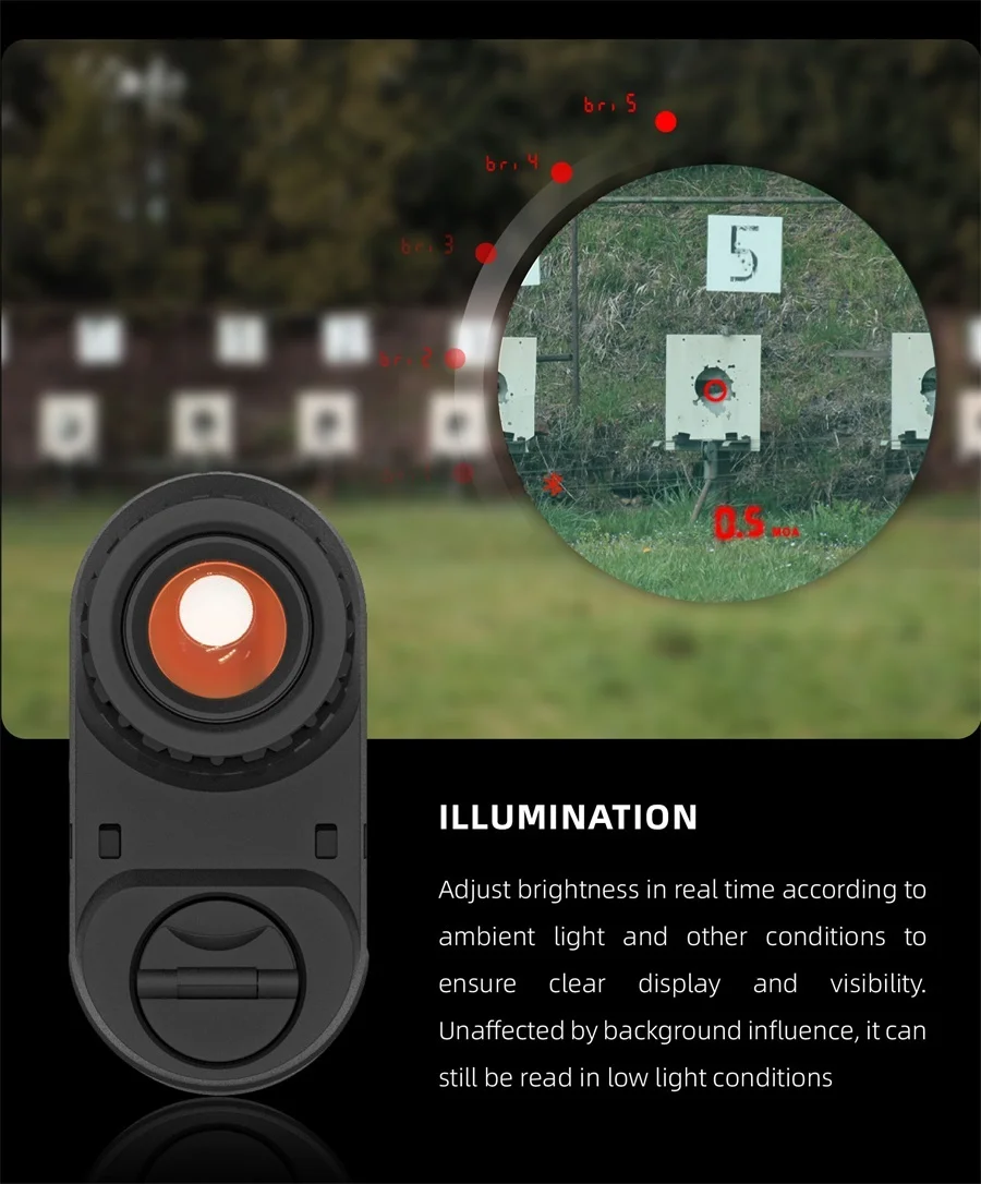 Rango de ciervos de 900 Yds, rango PinLock de 500 Yds, modo de escaneo para adquirir múltiples objetivos.