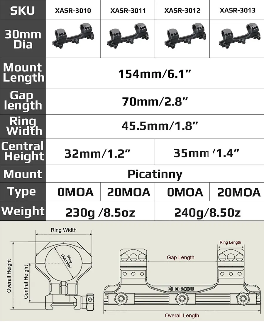 Demasiado bajo para mi mira Vector Optics Veyron; el anillo de aumento toca la base del visor. :-( Lo usaré para otro alcance.