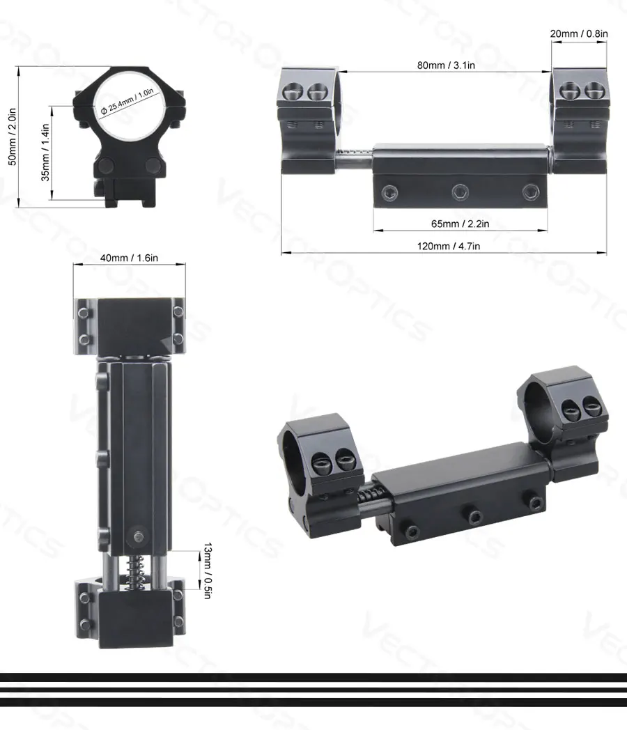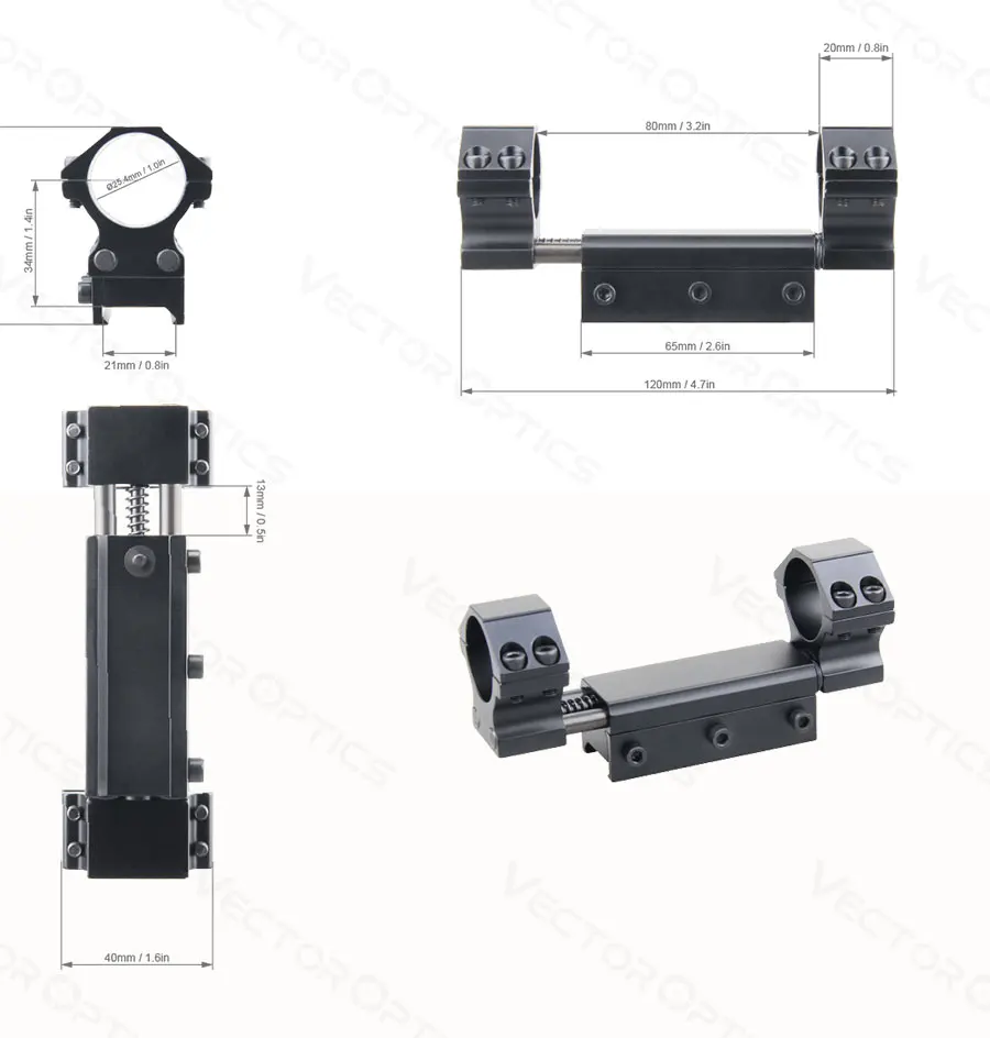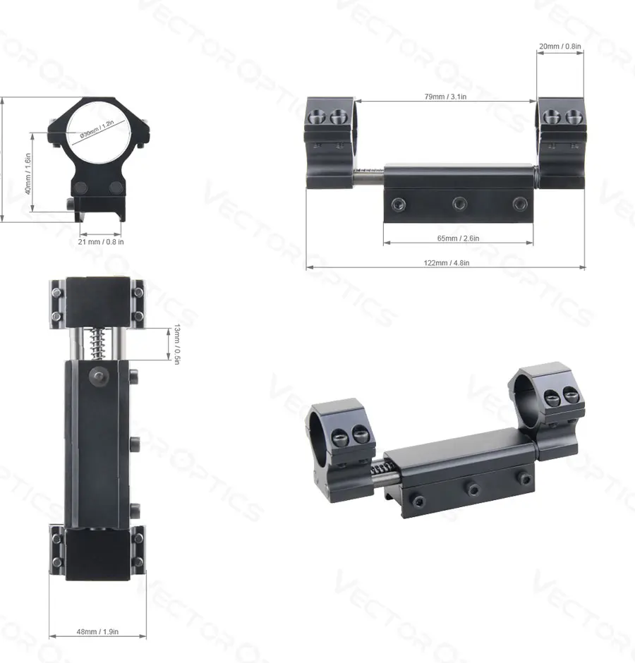30 mm de diámetro, 40 mm, 1,6 pulgadas desde la parte inferior hasta el centro del anillo, 4 tornillos por anillo