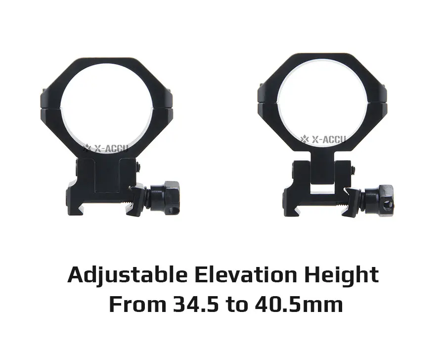 • 30mm de diámetro, altura de elevación ajustable de 35 a 41mm (1,4-1,6 ''inferior al centro del anillo)