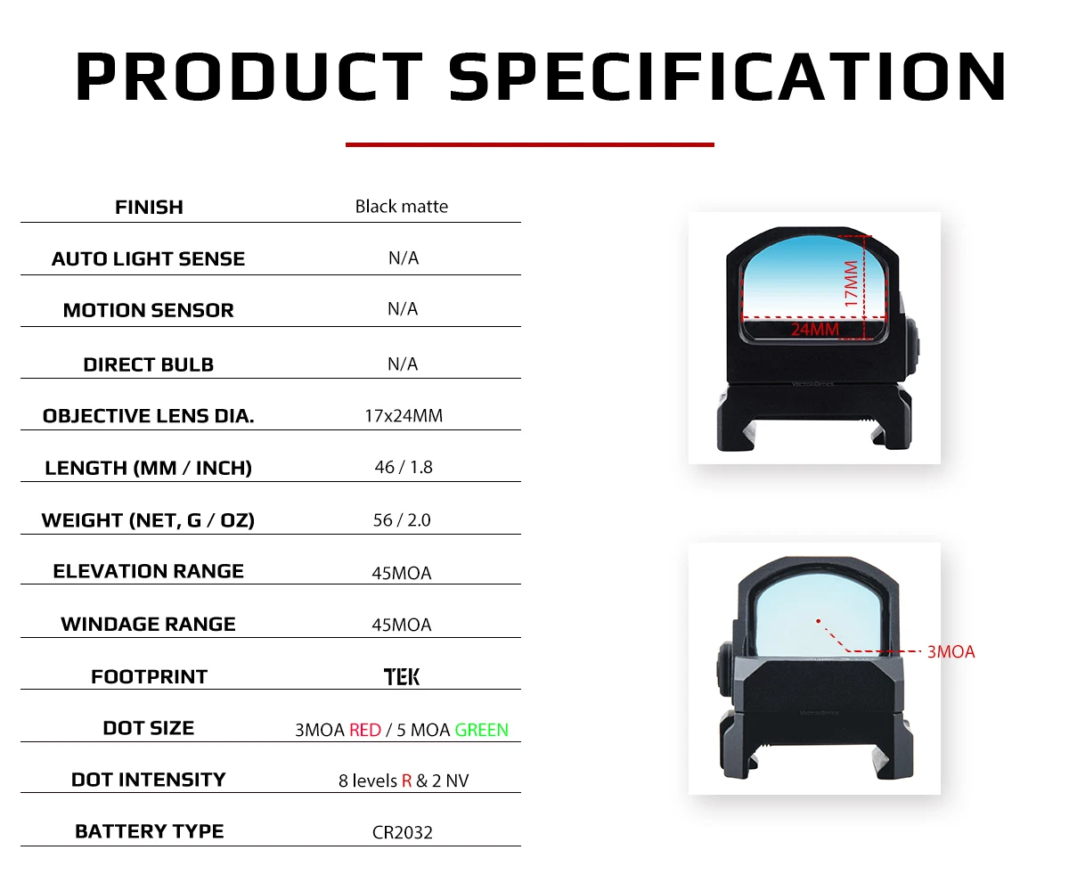 Tamaño de punto rojo 5MOA verde/3MOA con 8 niveles y 2 intensidades de punto verde NV, acabado negro mate
